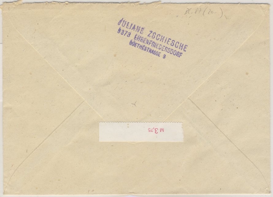 R-Zettel m. L1 "Ehrenfriedersdorf" überstempelt
