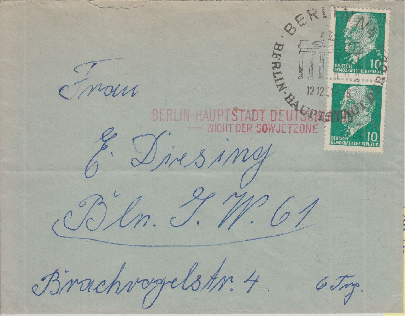 Ortsbrief Berlin mit Handwerbestempel "Berlin Hauptstadt der DDR" - roter L2 Gegenpropaganda - ohne Inhalt
