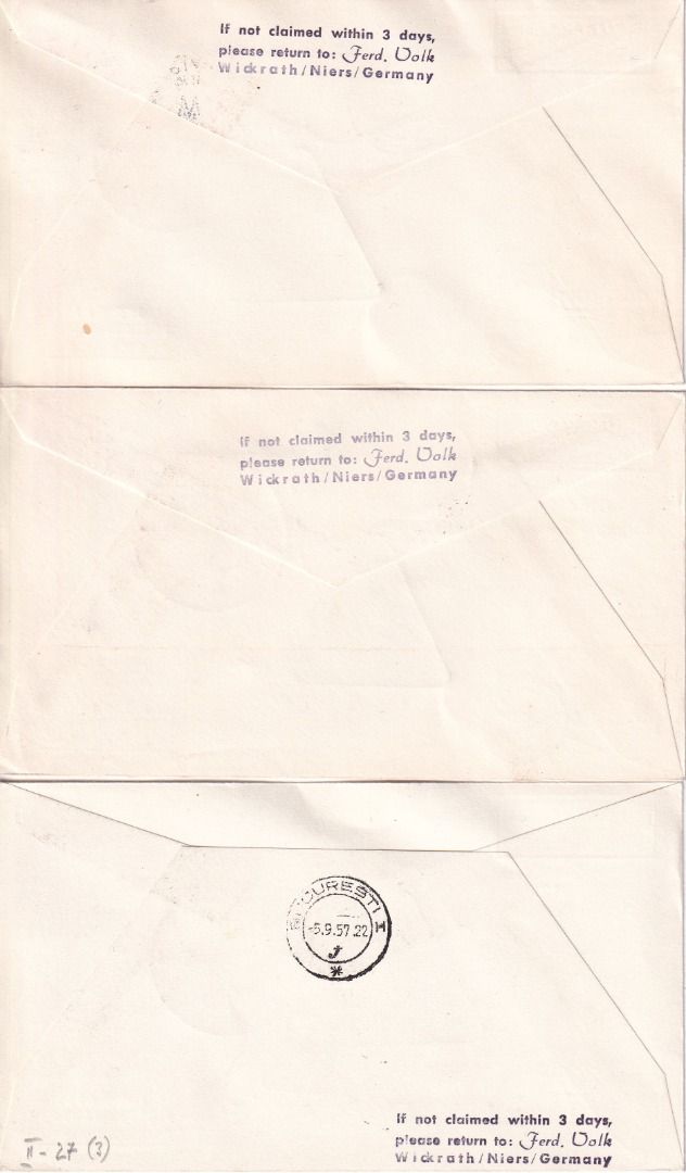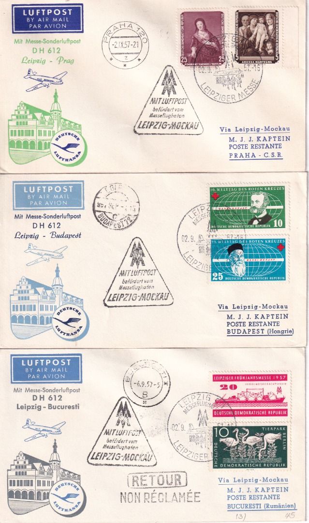 DDR - Messe-Sonderluftpost n. RUMÄNIEN/CSSR/UNGARN 1957 3 Briefe