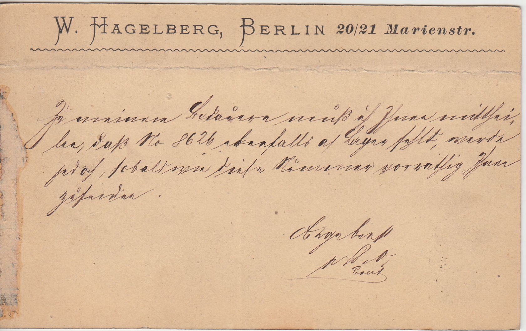 Karte waagr. Bugspur u. Haftstelle rückseitig