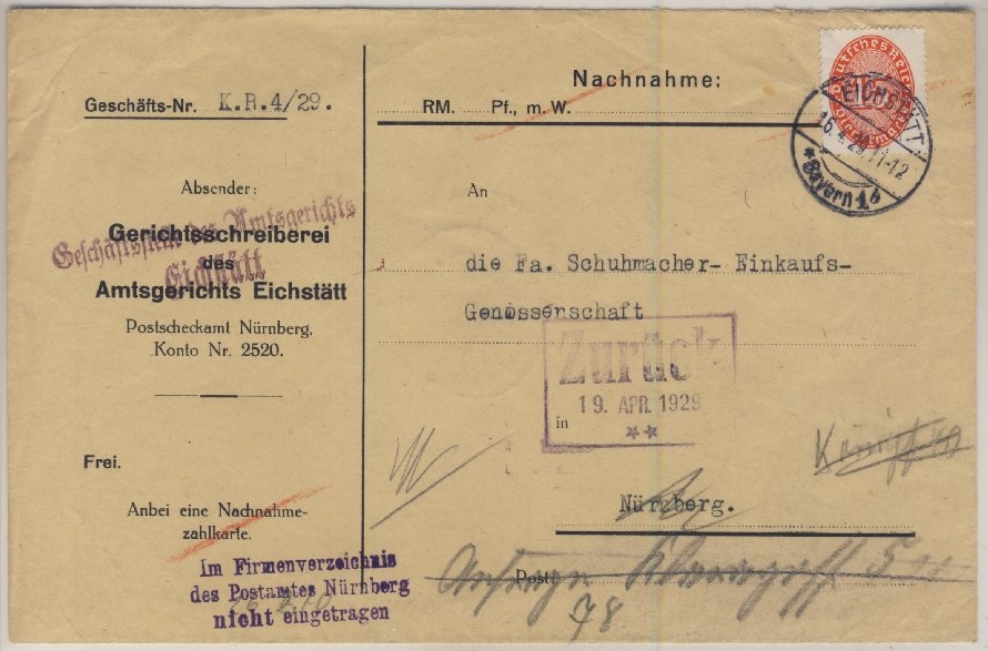 L2 "Ohne nähere Angaben in Nürnberg nicht zu ermitteln" - "Im Firmenverzeichnis...." - möglicher senkr./waagr. Farbstreifen = Scan-Fehler
