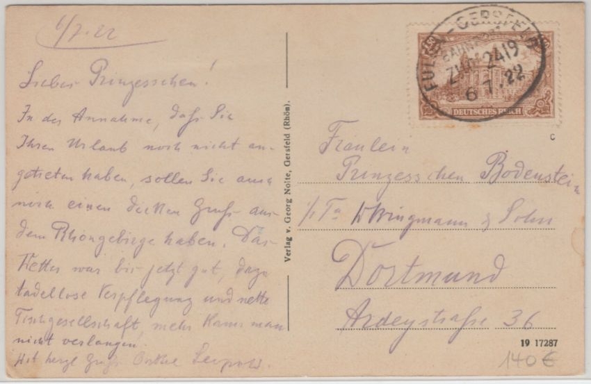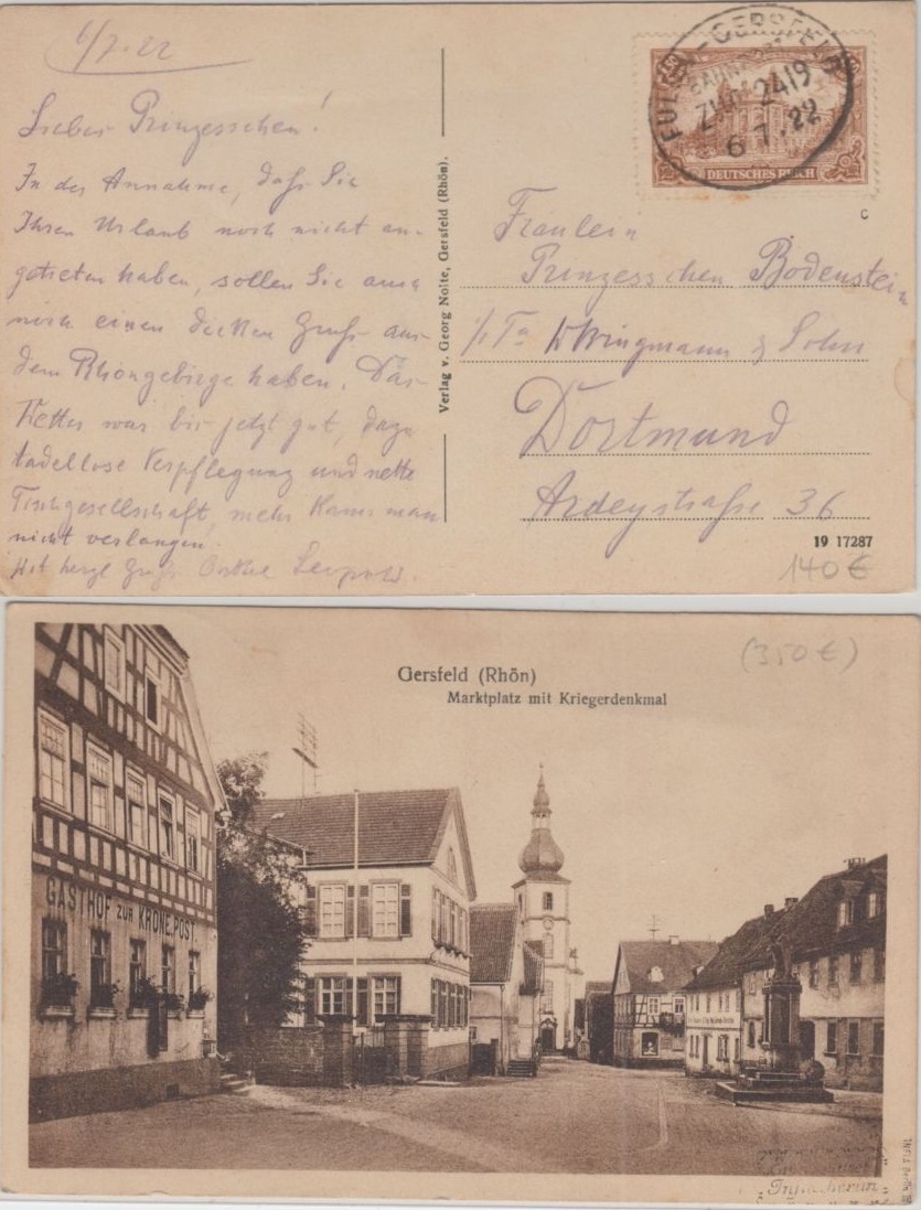 rs. Ansicht Gersfeld Marktplatz - Briefstempel Grossh. Bad. Salinenamt - farbgeprüft Infla Berlin
