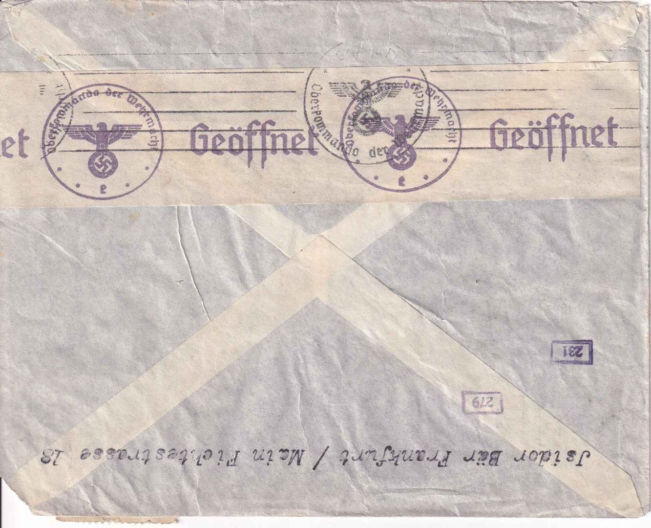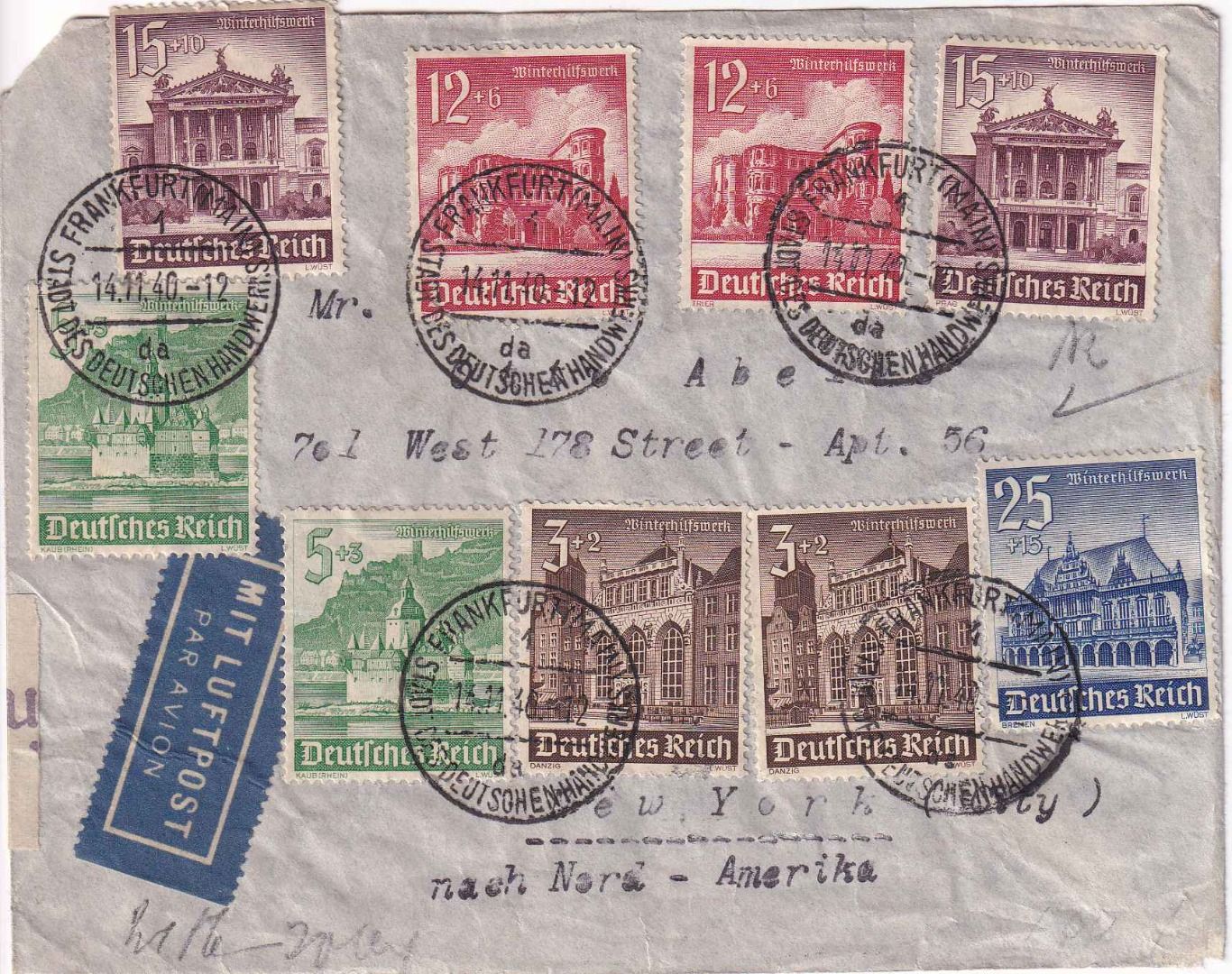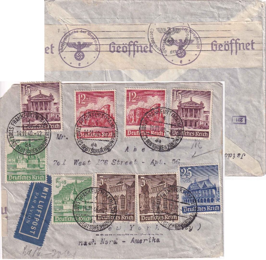 gelaufen n. New York - rs. OKW-Zensurverschluss - trotz kl. Mgl. attraktiver Beleg - ohne Inhalt