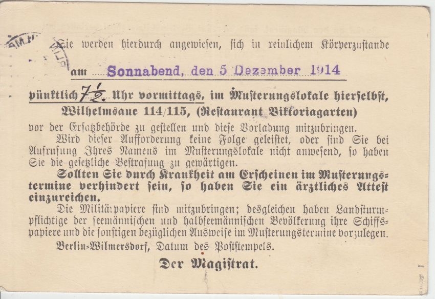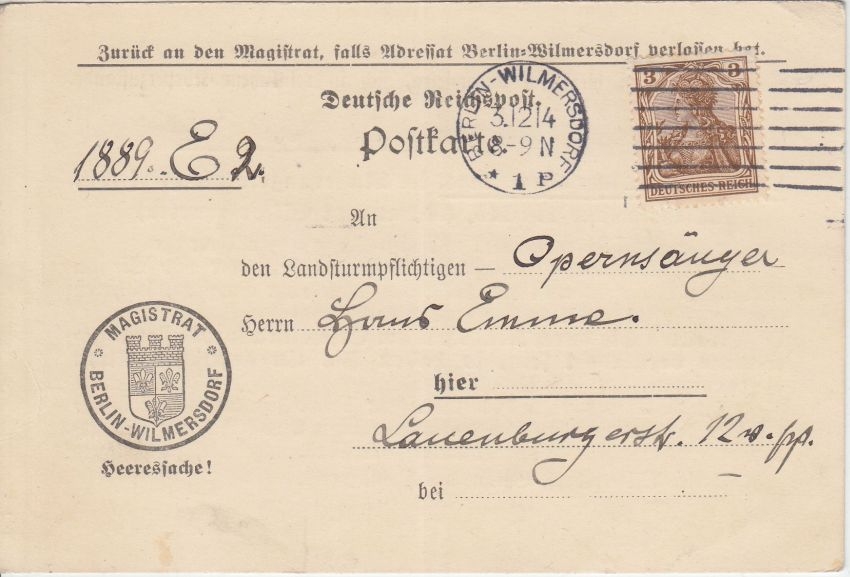 Vordruckkarte des Magistrats - Heeressachen waren innerorts gebührenpflichtig
