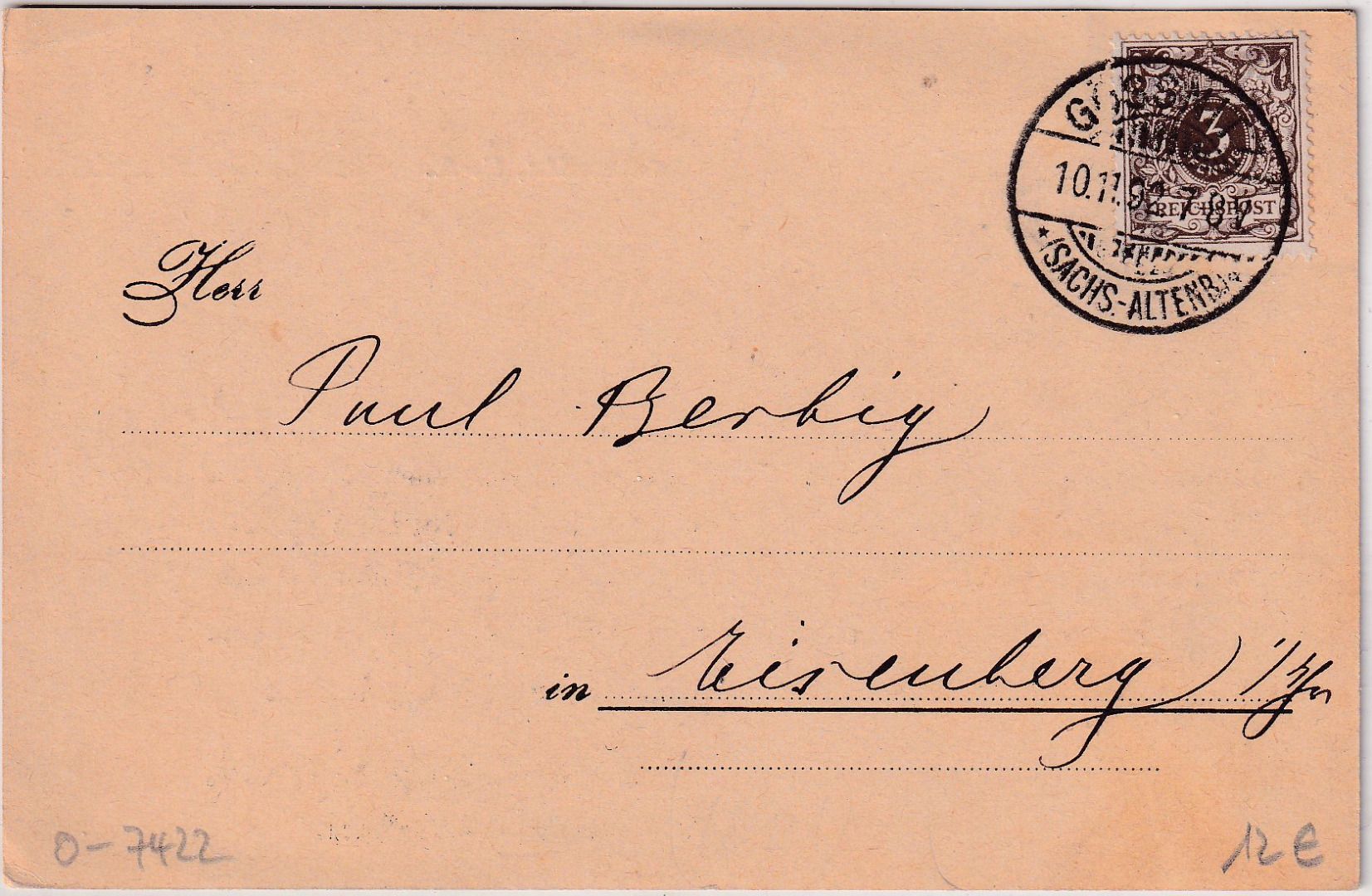 DR - 3 Pfg. K/A Drucksachenkarte/Reiseavis Gössnitz - Eisenberg 1892