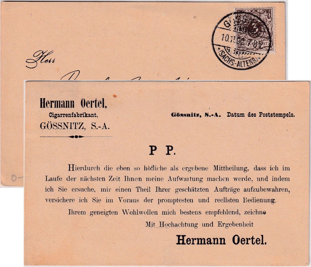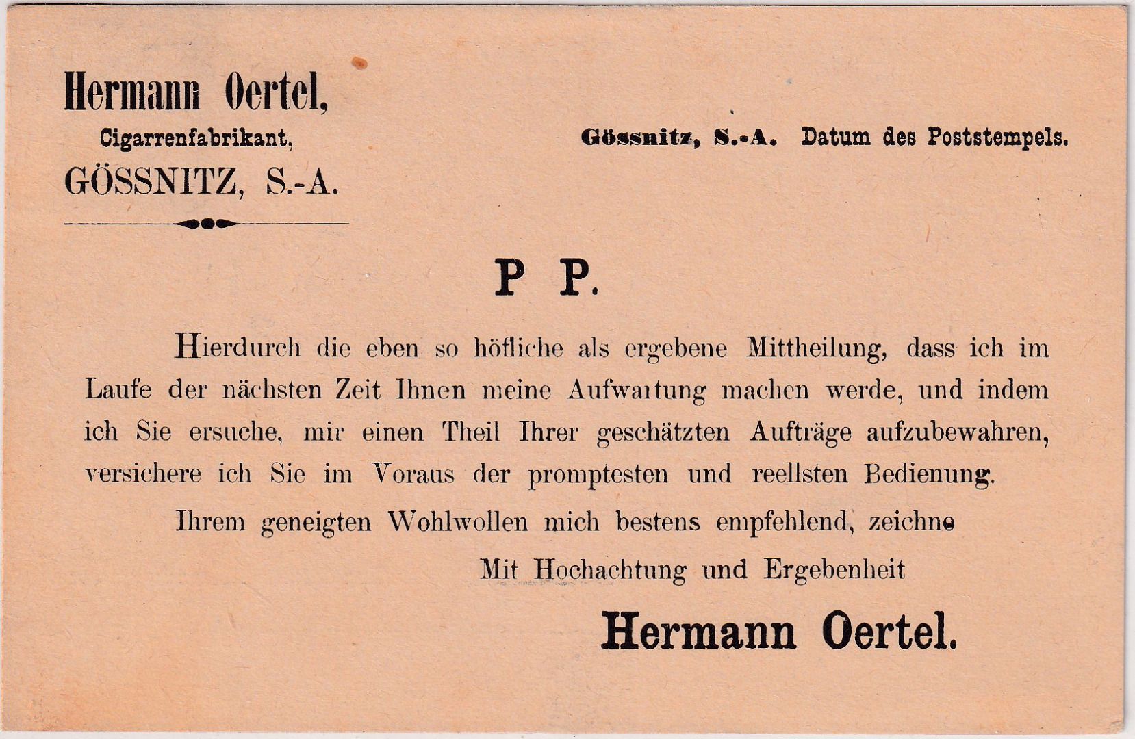 Vordruck: Hermann Oertel Cigarrenfabrik Gössnitz, S.-A.