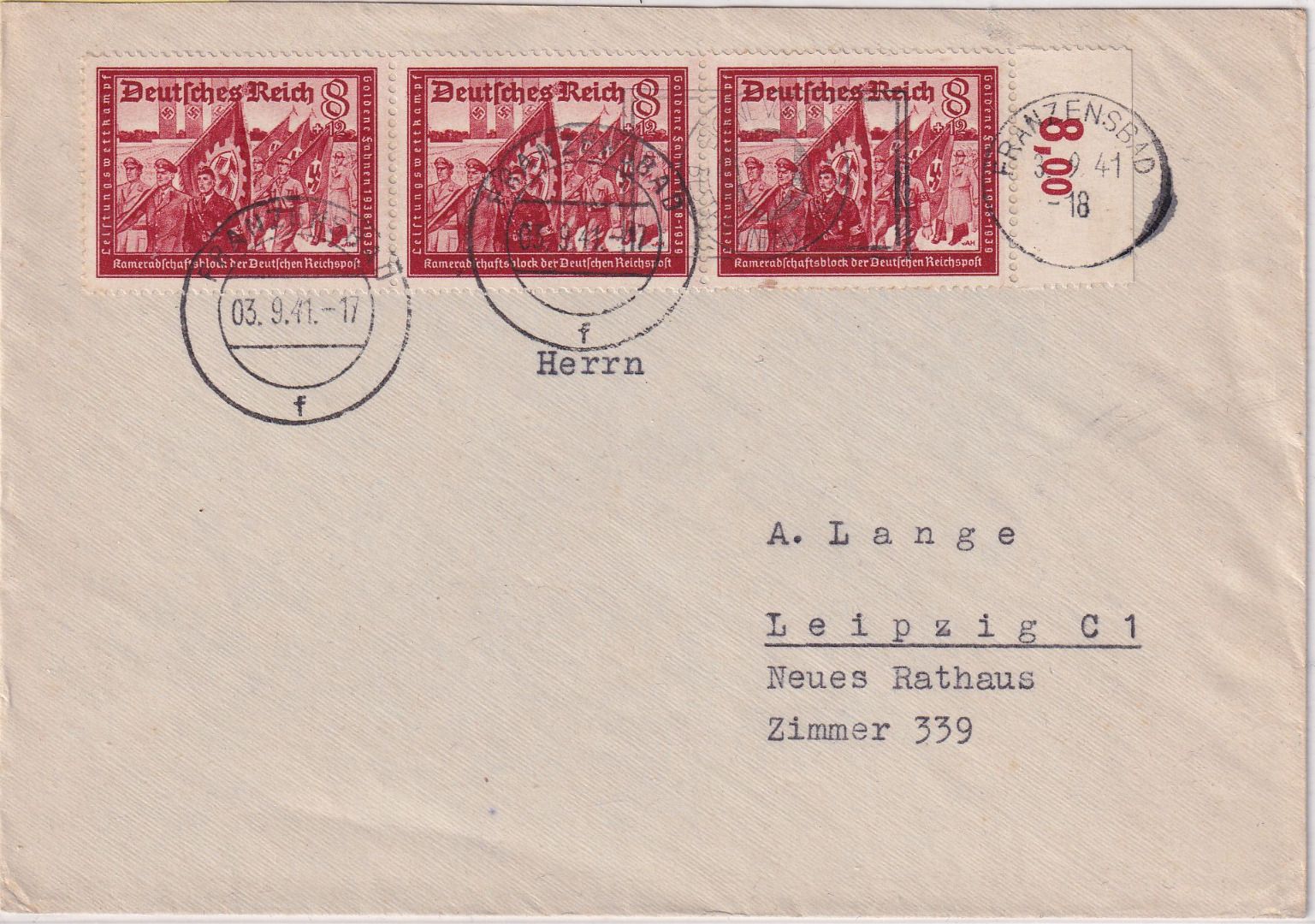 Dreierstreifen v. Oberrand - Marken 2x mit Handstempel, 1x mit Masch.stpl .entwertet - ohne Inhalt