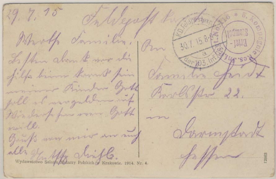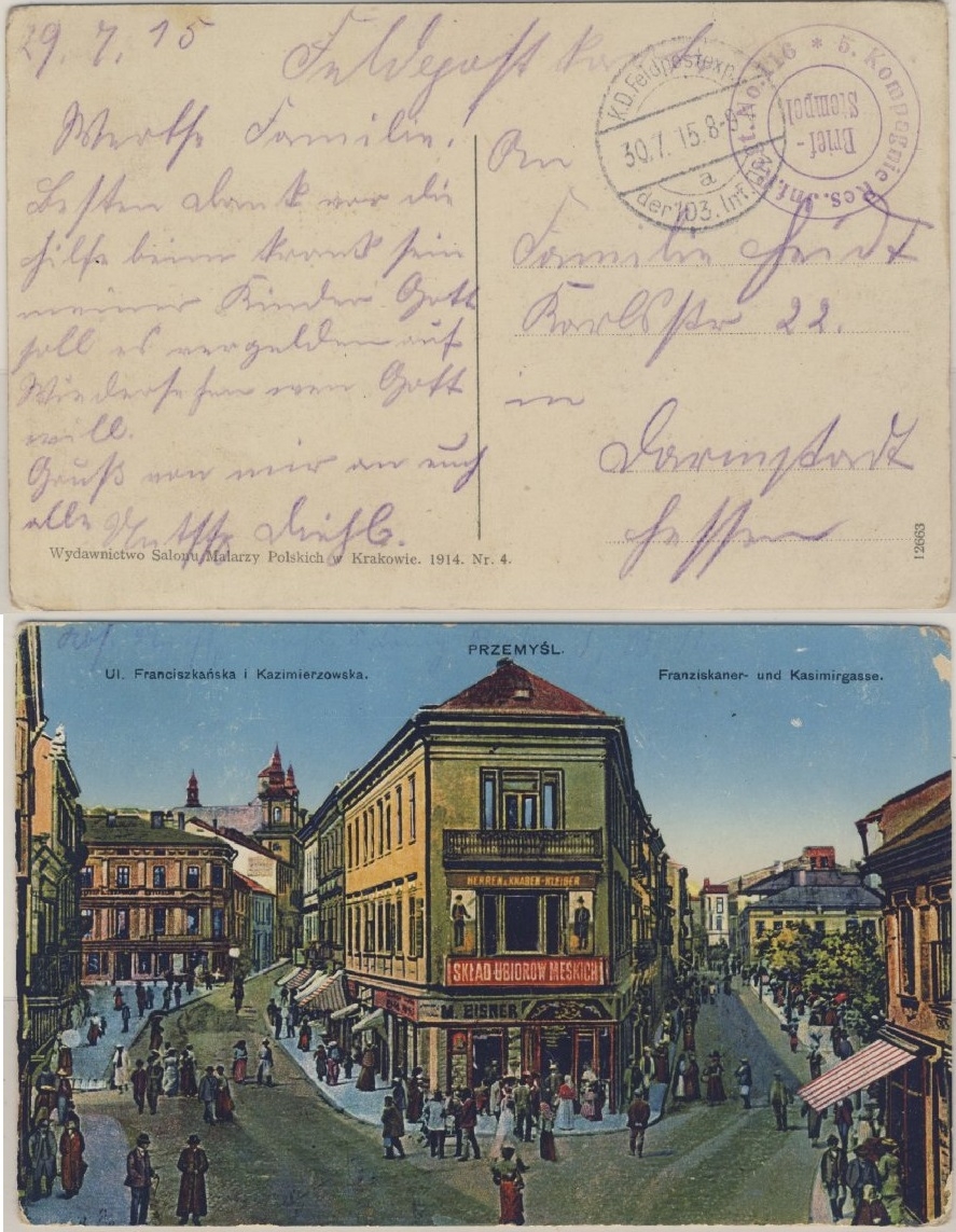 n. Darmstadt 1915 - rs. Farbansicht Przemysl (Straßenansicht)