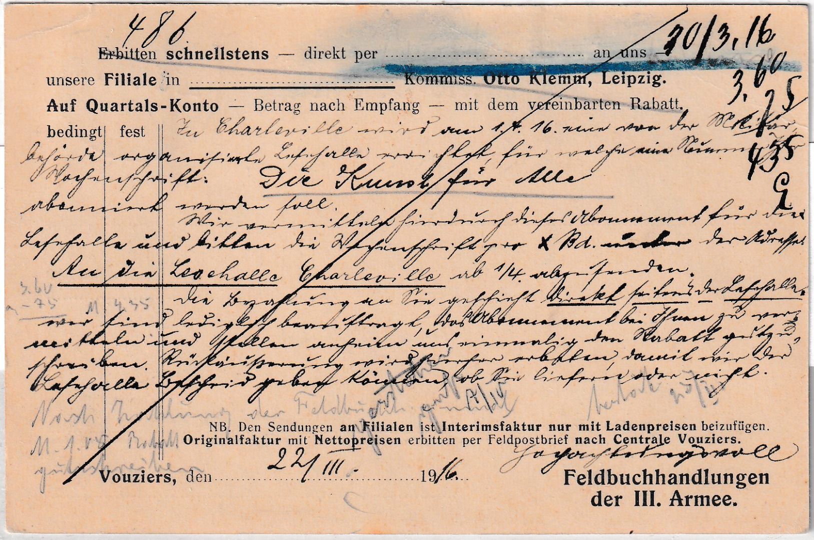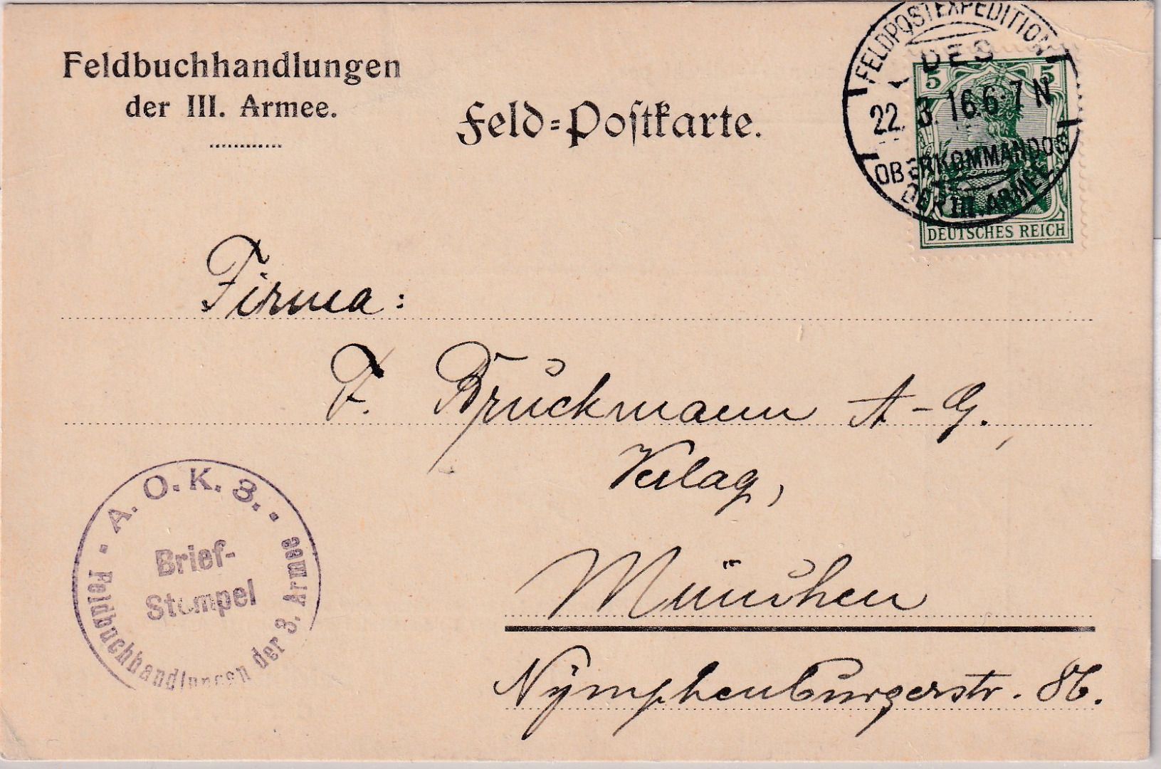 Sendungen der Feldbuchhandlungen waren nicht portofrei