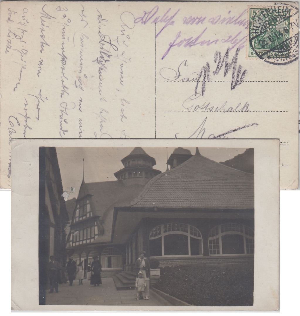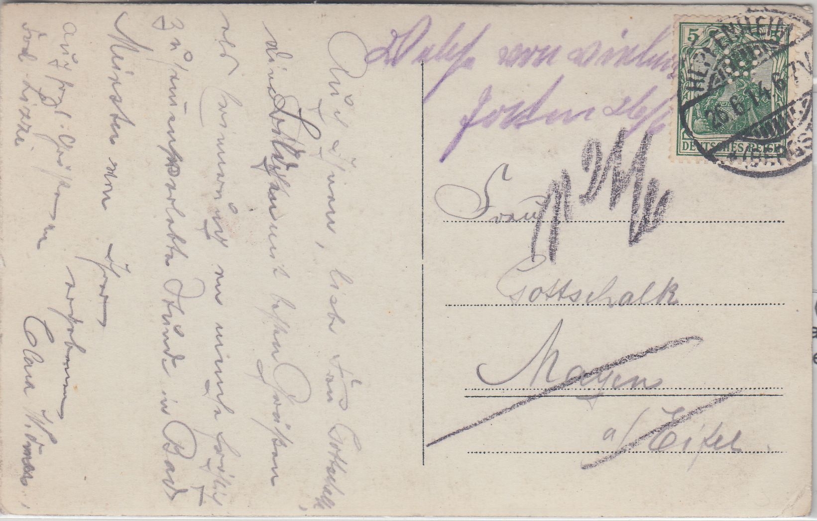 Firmenlochung "W" = Oskar Widmer Sonnenschutz - die rs. Abb. zeigt offenbar Oskar jun. mit Mutter Clara Widmer (Unterschrift)