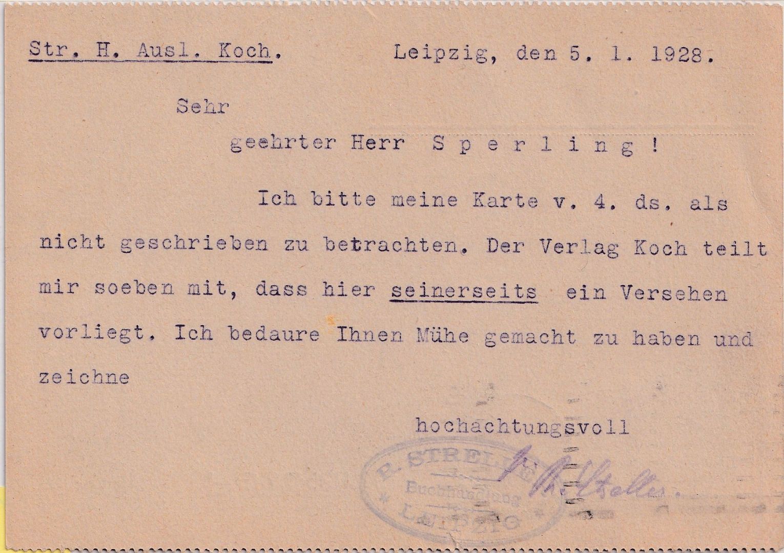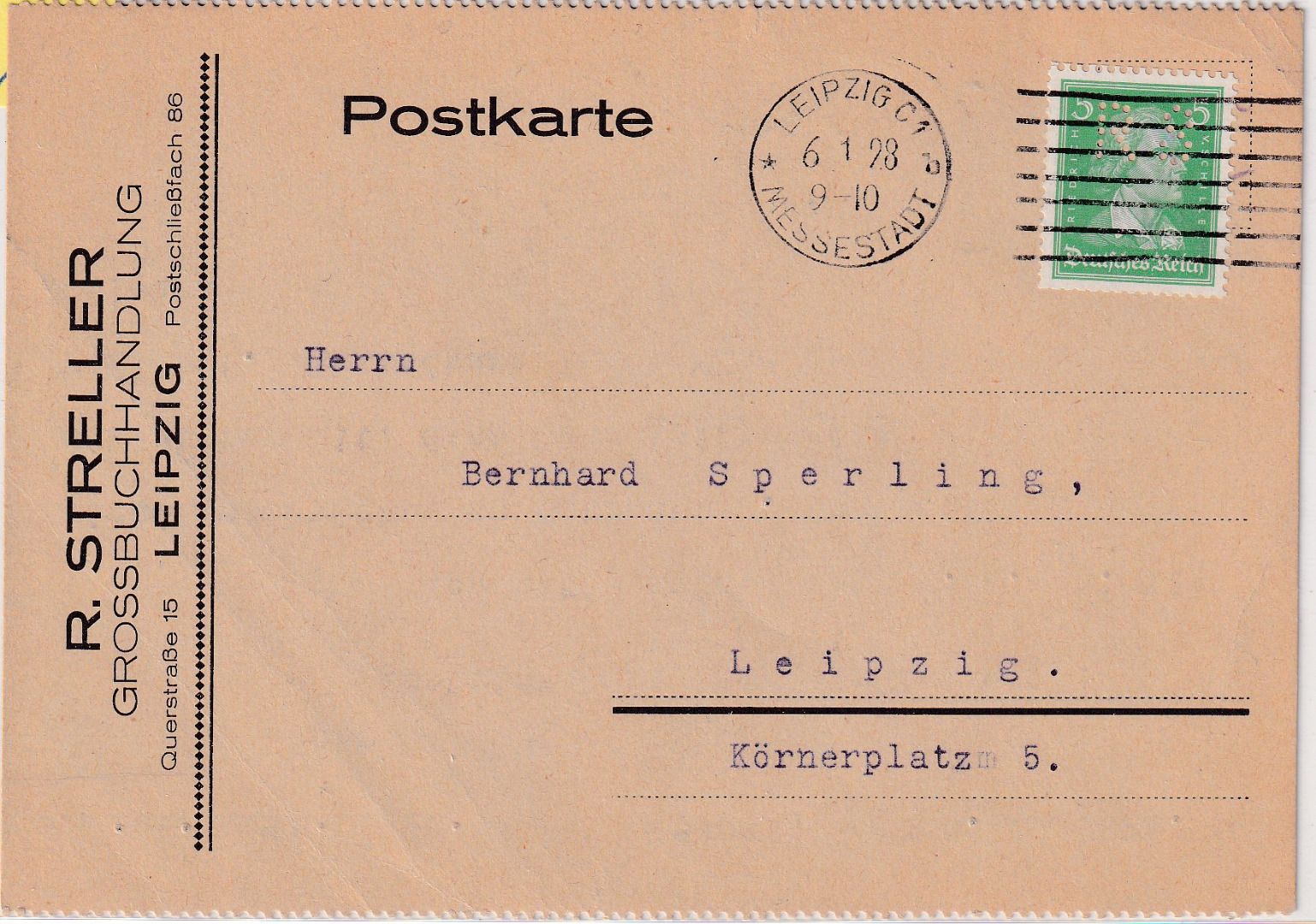 Firmenlochung "RS" = R. Streller Großbuchhandlung