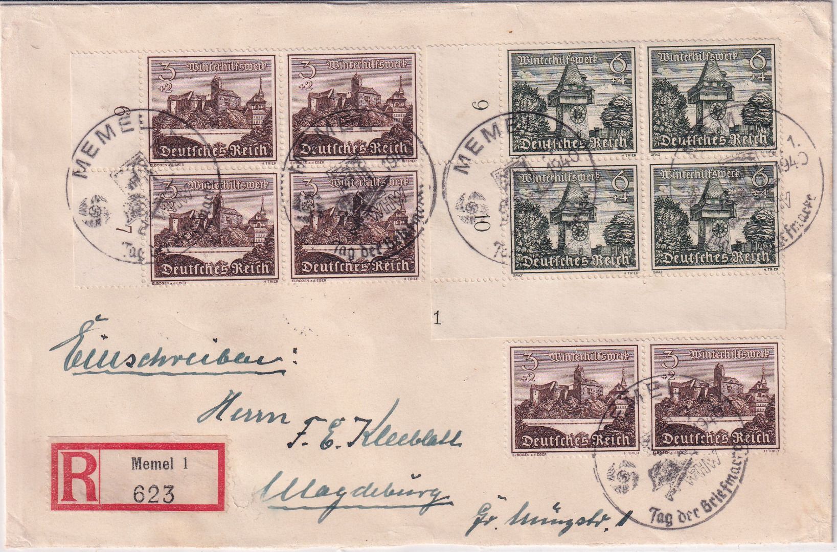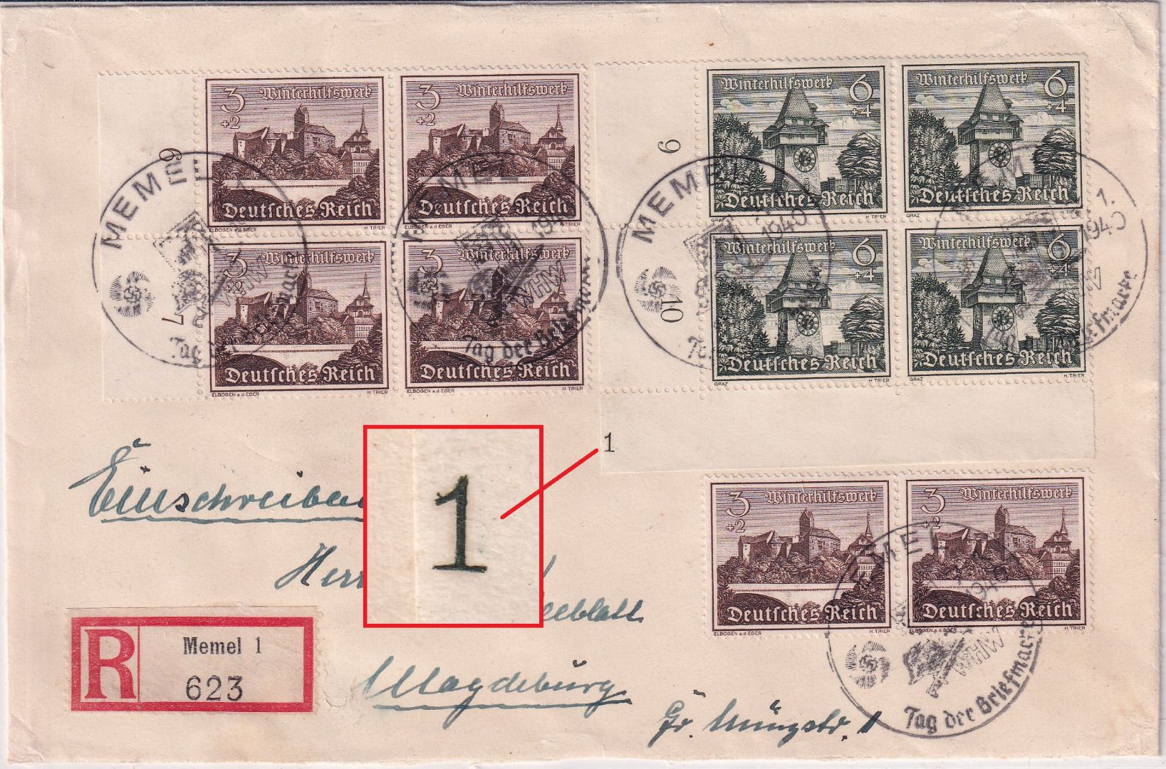 gelaufen n. Magdeburg - SST Tag der Briefmarke Memel - Formnummern auf Brief sehr selten ! - ohne Inhalt
