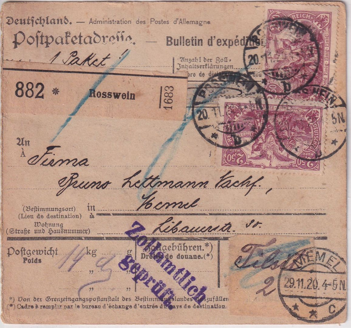 Leitzettel Tilsit - gepr. Infla