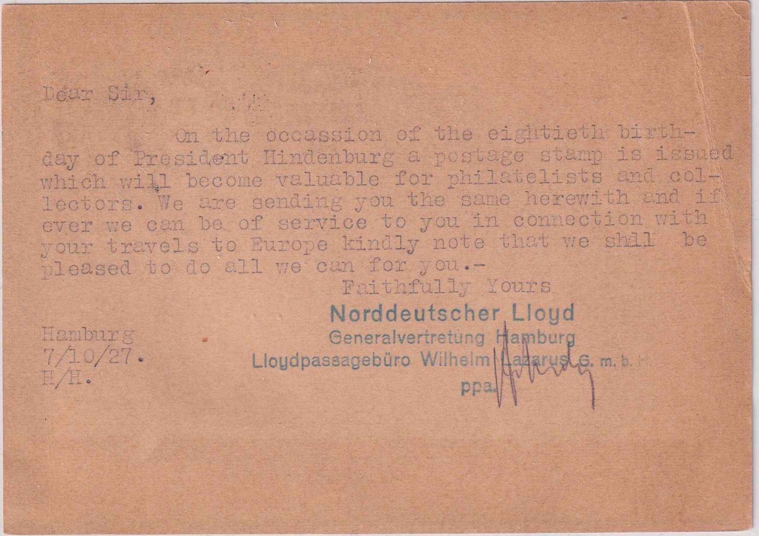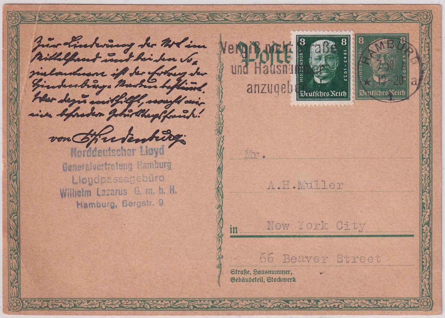 gelaufen v. Hamburg n. New York - Karte links oben kl. Eckbug