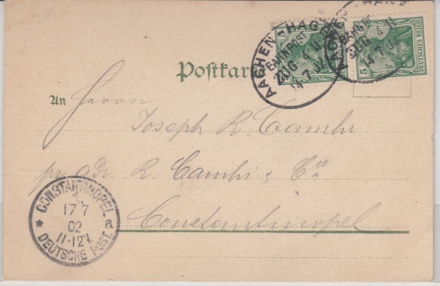 Constantinopel - Ank.stpl. d. Deutschen Post - rs. Farbansicht Königsplatz m. Bismarckdenkmal