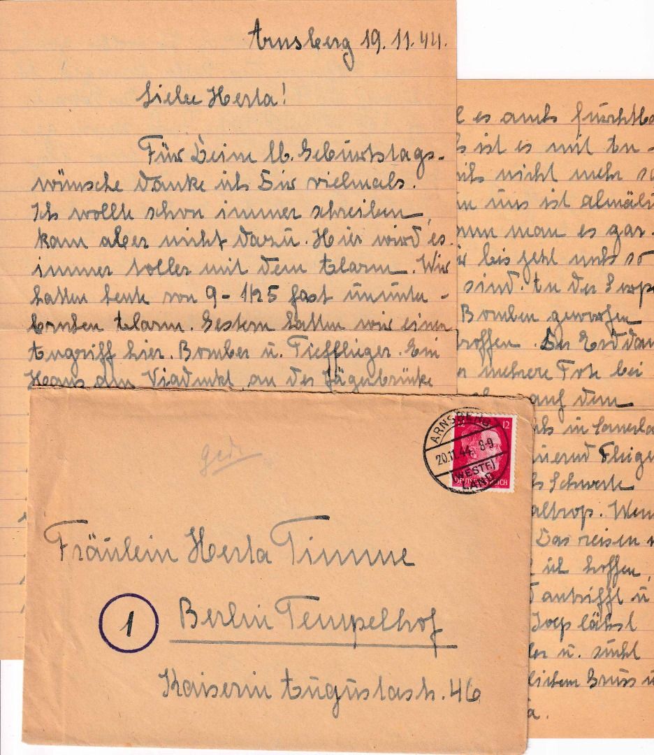 vierseitiger Inhalt m. div. Mitteilungen zu Fliegerangriffen auf Arnsberg