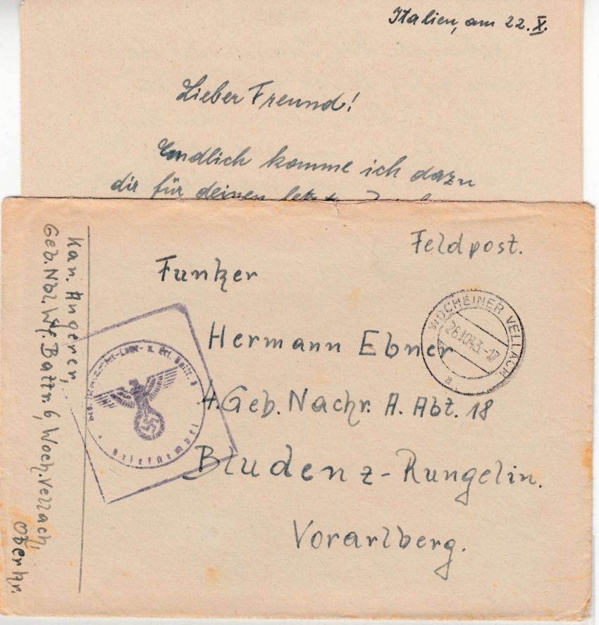Bludenz - "Front-Front" - Abs.stpl. Geb. Nebelwerfer Lehr- u. Ersatz-Bttr. 6" - mit Inhalt