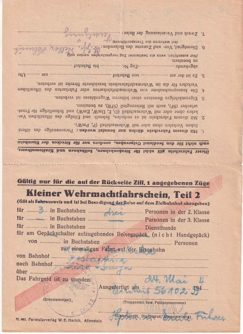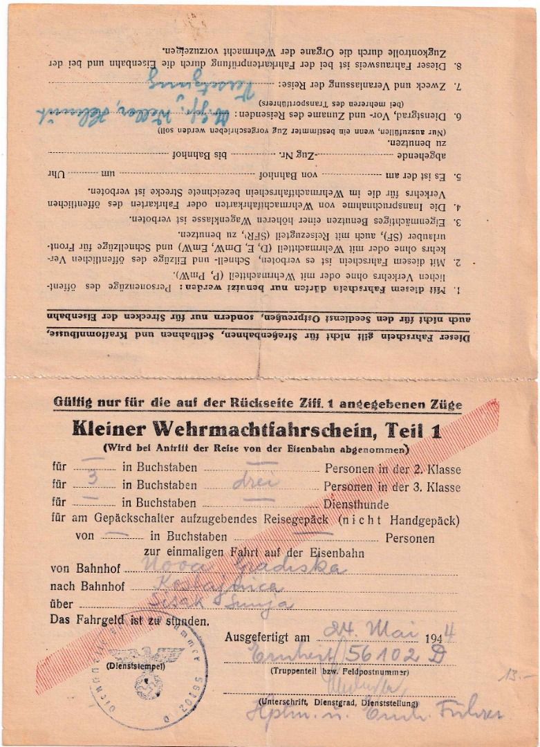 Fp.Nr. 56102D = Kol. Kosaken Abt. 35 (Kroatien) - Fahrschein für die Eisenbahnstrecke Nova Gradiska n. Sisak Sunja - Teil 1 und 2 zusammenhängend - selten !