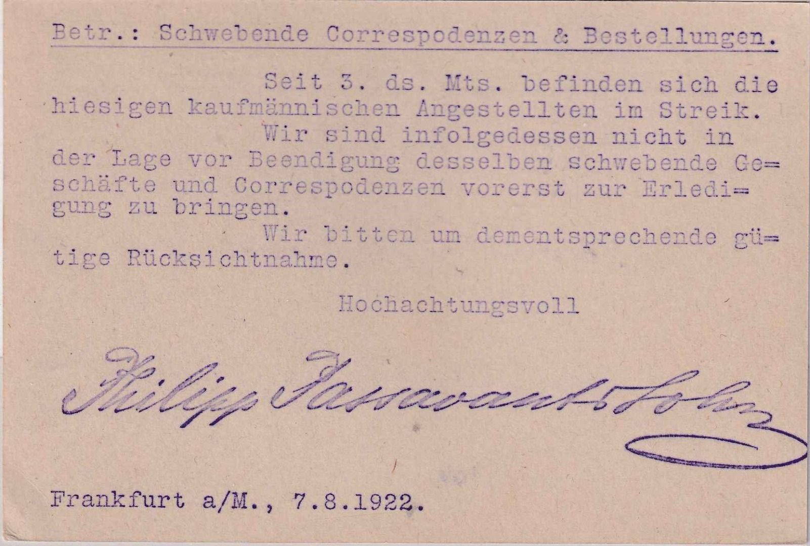 rs. Streikmitteilung ! Zeitgeschichte !
