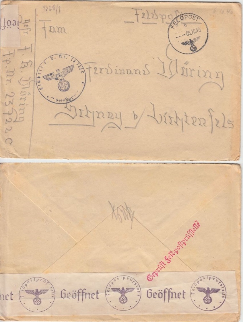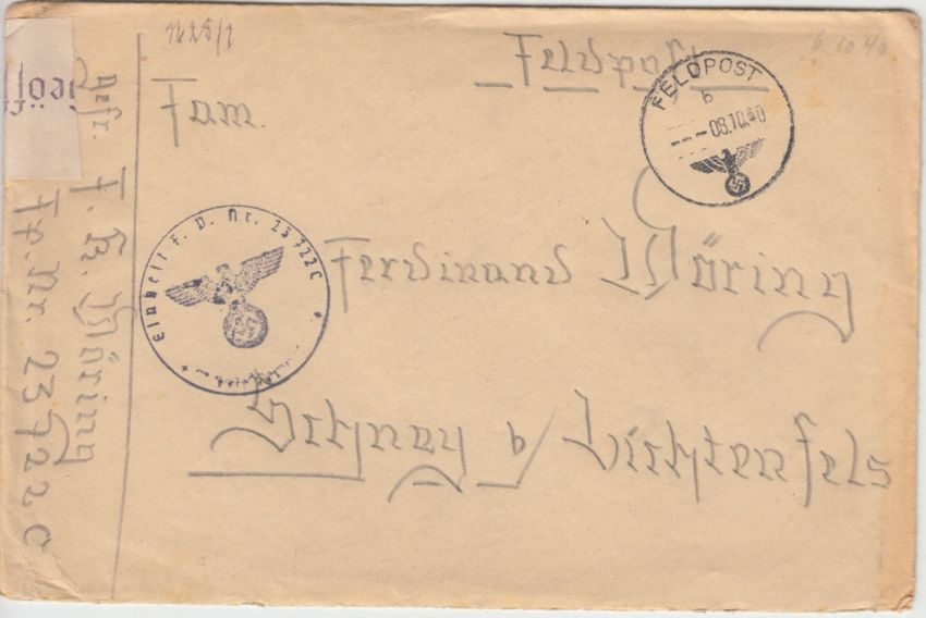 n. Schney b. Lichtenfels - ohne Inhalt - FpNr. 23722C = 2. Bttr. Art.Rgt. 296 Westfront Raum Dünkirchen