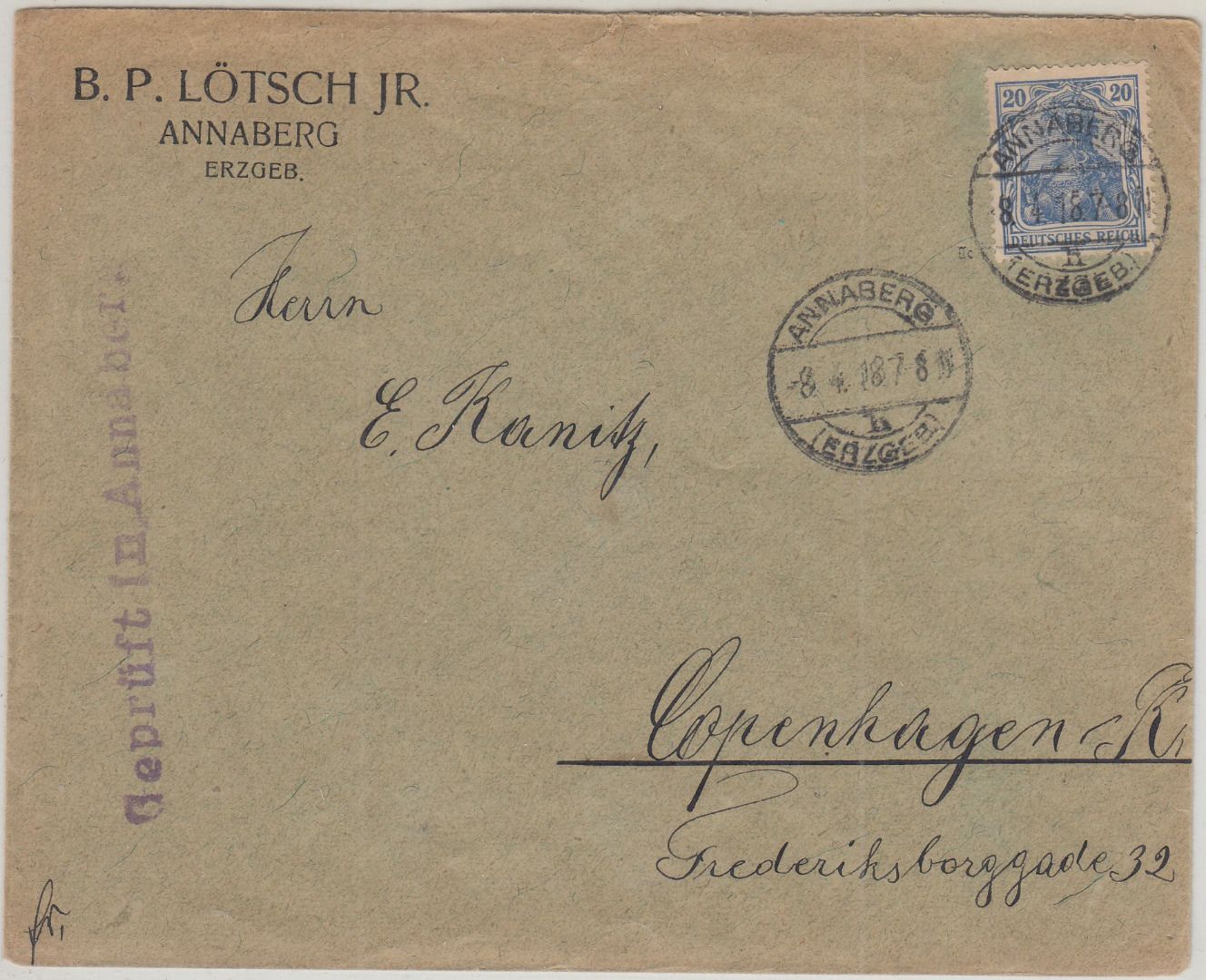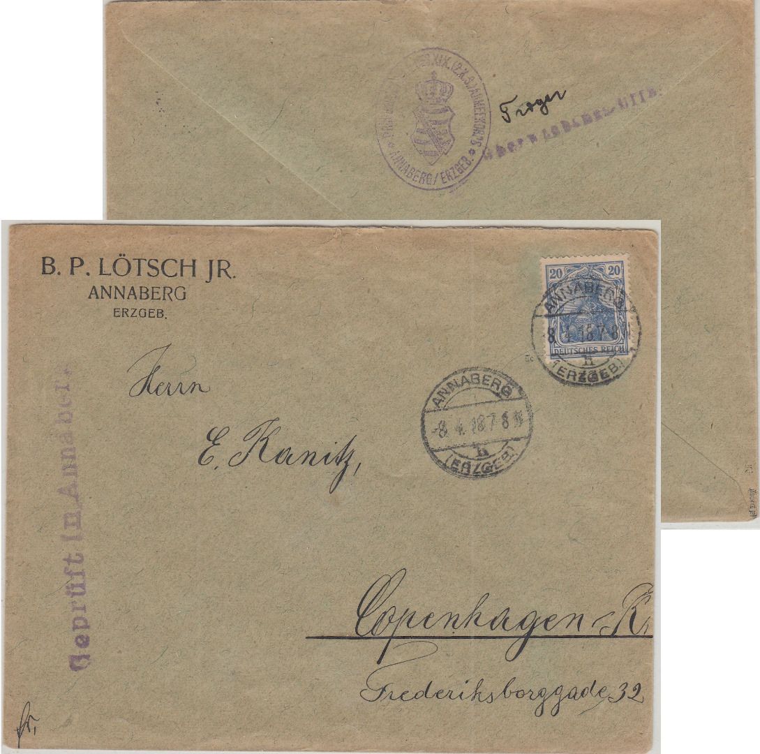 rs. zus. Siegel d. Prüfungsstelle d. XIX. (K.S.) Armeekorps u. Unterschrift d. Überwachungsoffiziers - seltene Zensur - geprüft Jäschke-L. BPP - ohne Inhalt