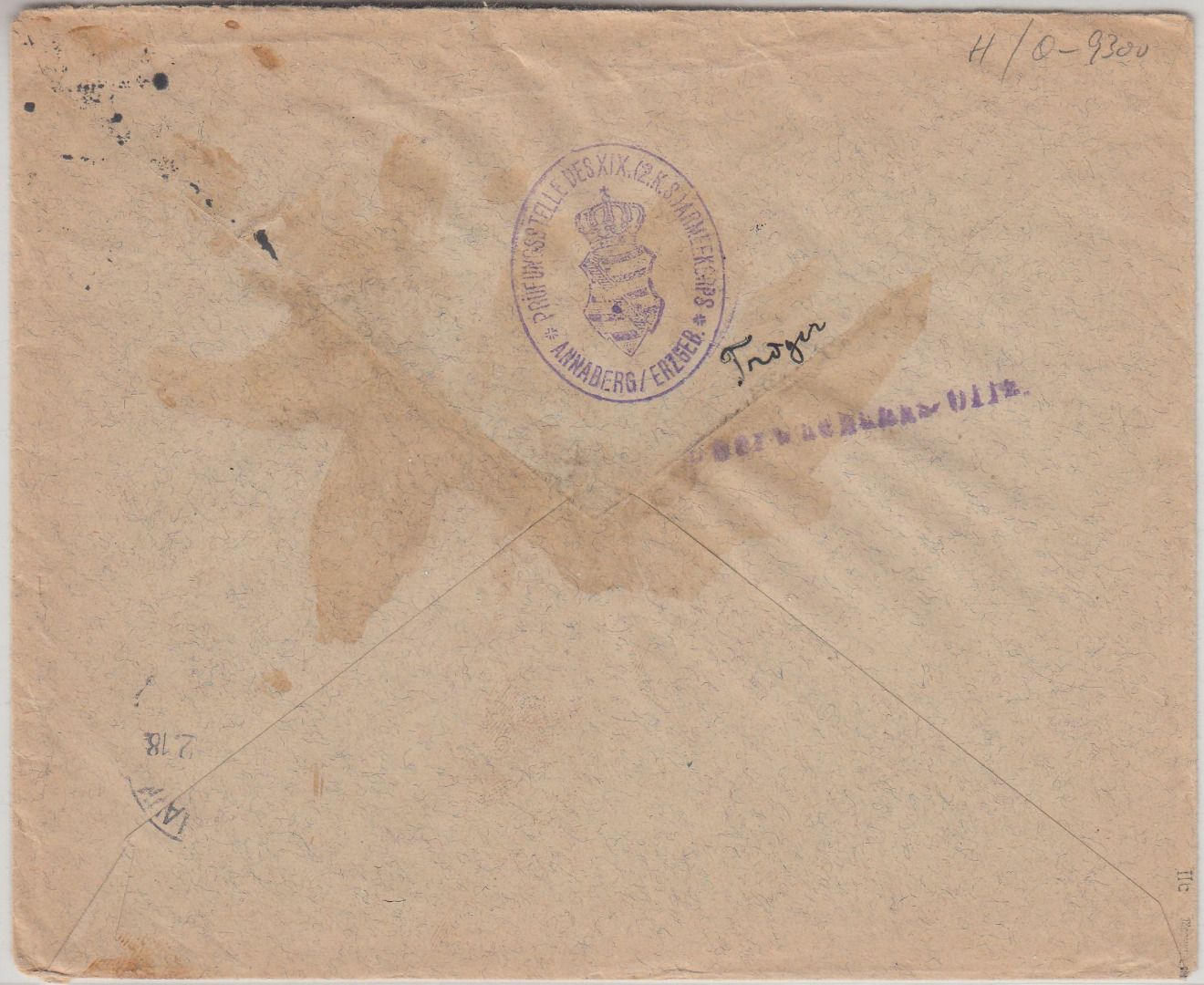 rs. zus. Siegel d. Prüfungsstelle d. XIX. (K.S.) Armeekorps u. Unterschrift d. Überwachungsoffiziers - seltene Zensur - geprüft Jäschke-L. BPP - ohne Inhalt