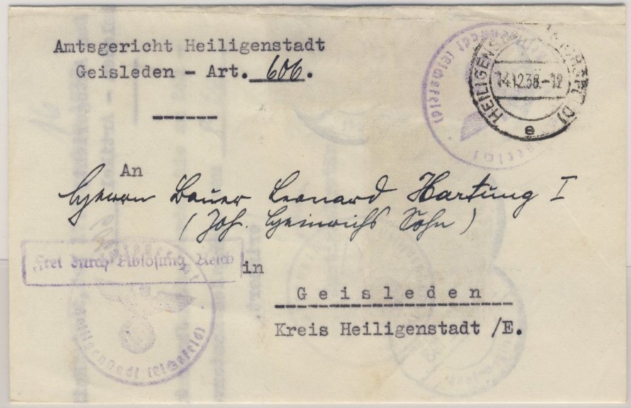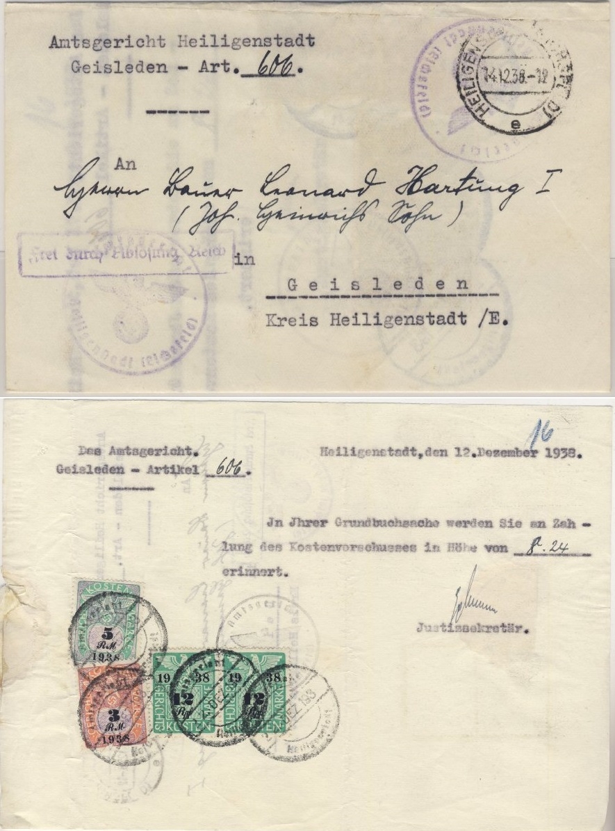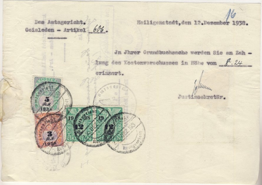 mit Inhalt (u.a. 8,24 RM Gerichtsmarken)