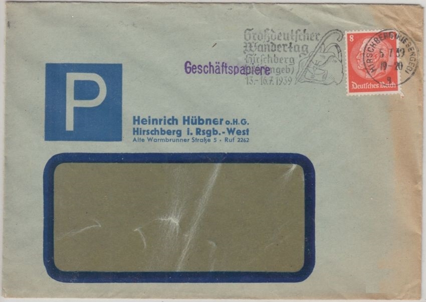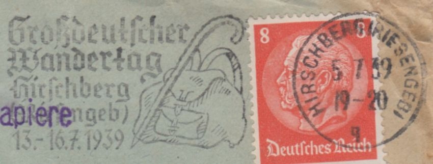 seltener Maschinenstempel - ohne Inhalt - Motiv: Rucksack, Wanderstock