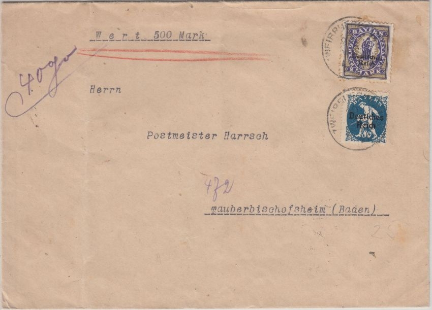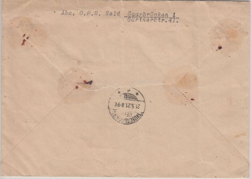Tauberbischofsheim - Absender v. Saarbrücken (!) - Kuvert links zarte Bugspur - ohne Inhalt