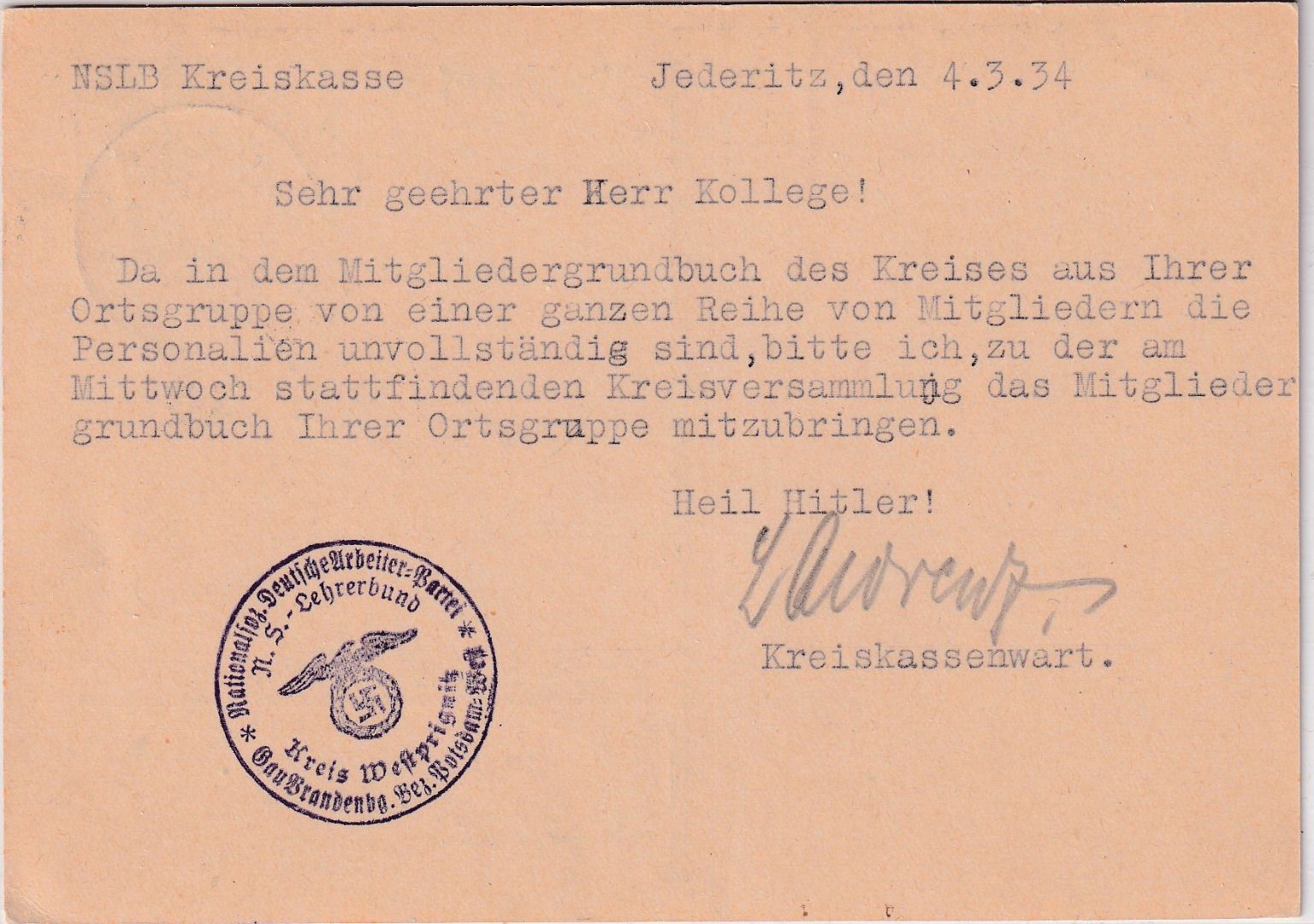 rs. Dienstsiegel NSDAP NS-Lehrerbund Kreis Westprignitz Gau Brandenburg Bez. Postdam West