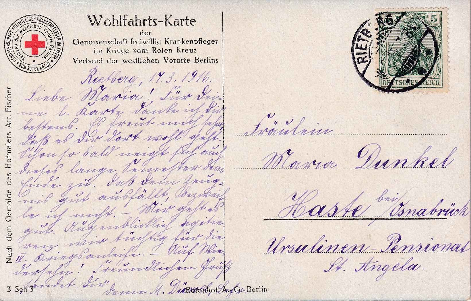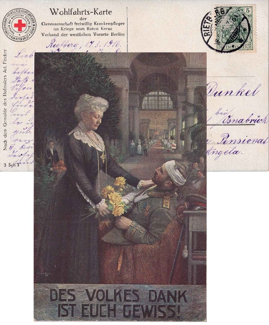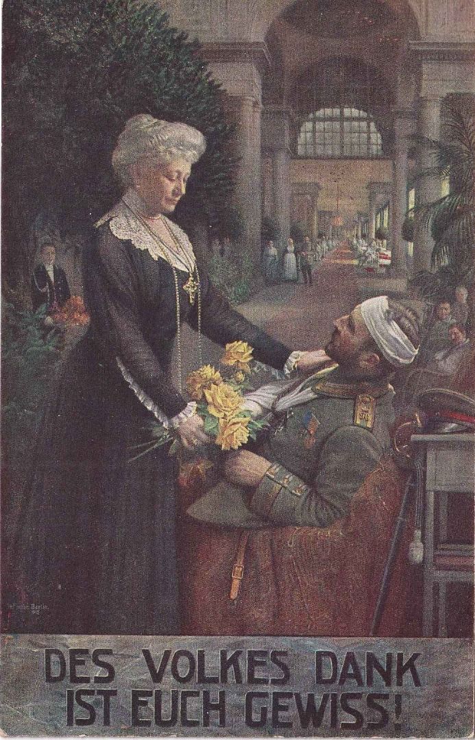 DR - Kaiserin u. Verwundeter farb. Künstler-/Wohlfahrtskarte Rotes kreuz 1916