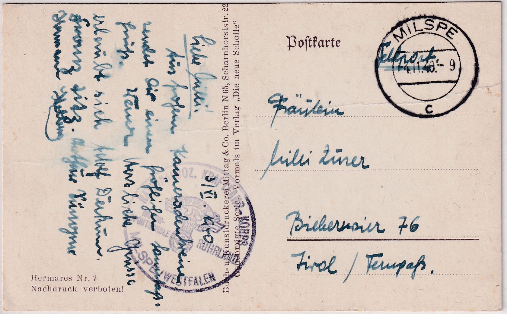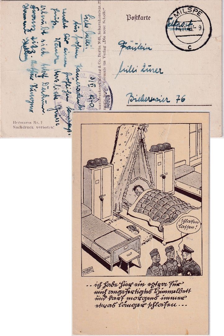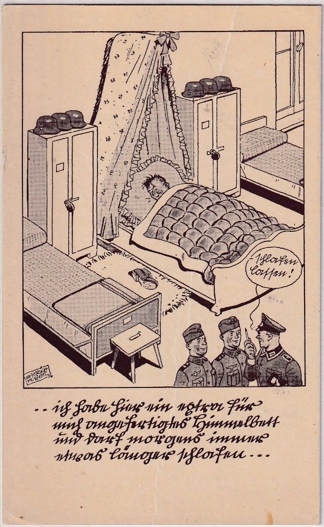 Briefstempel - Militaria-Juxkarte - zarte waagr. Bugspur