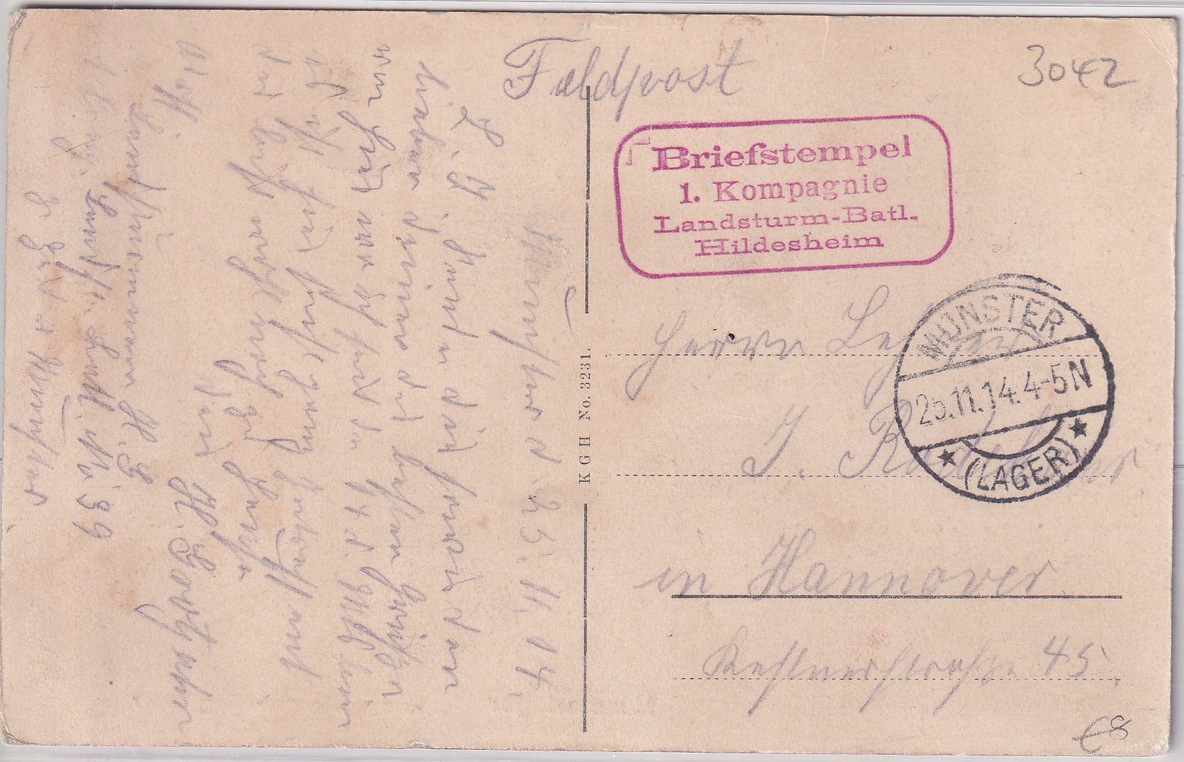 gelaufen n. Hannover - roter Briefstpl. Landsturm-Btl. Hildesheim