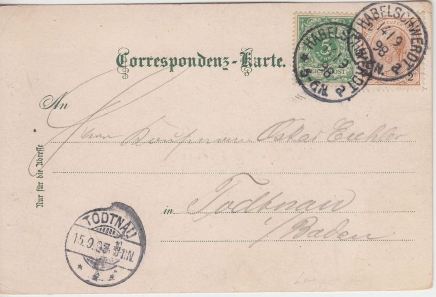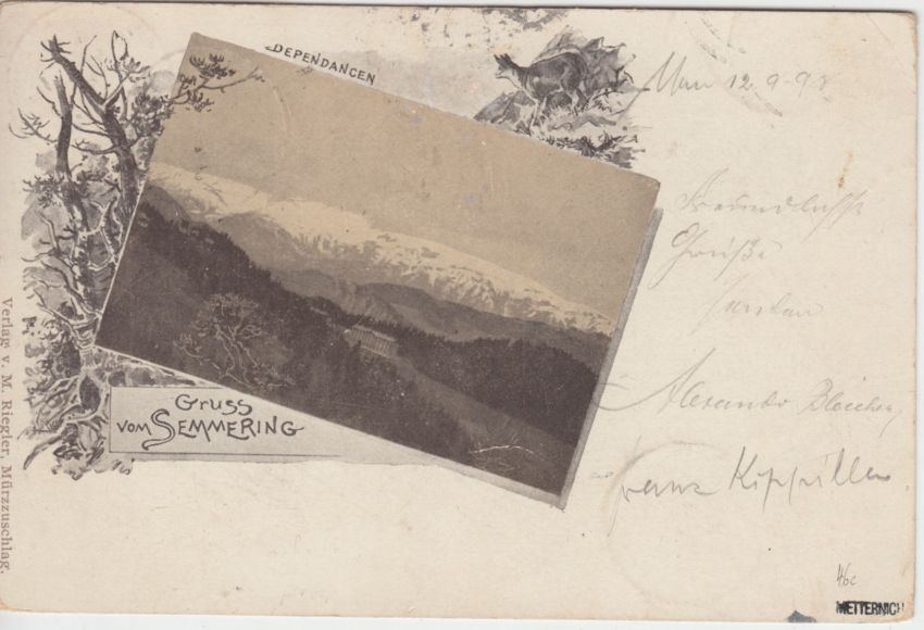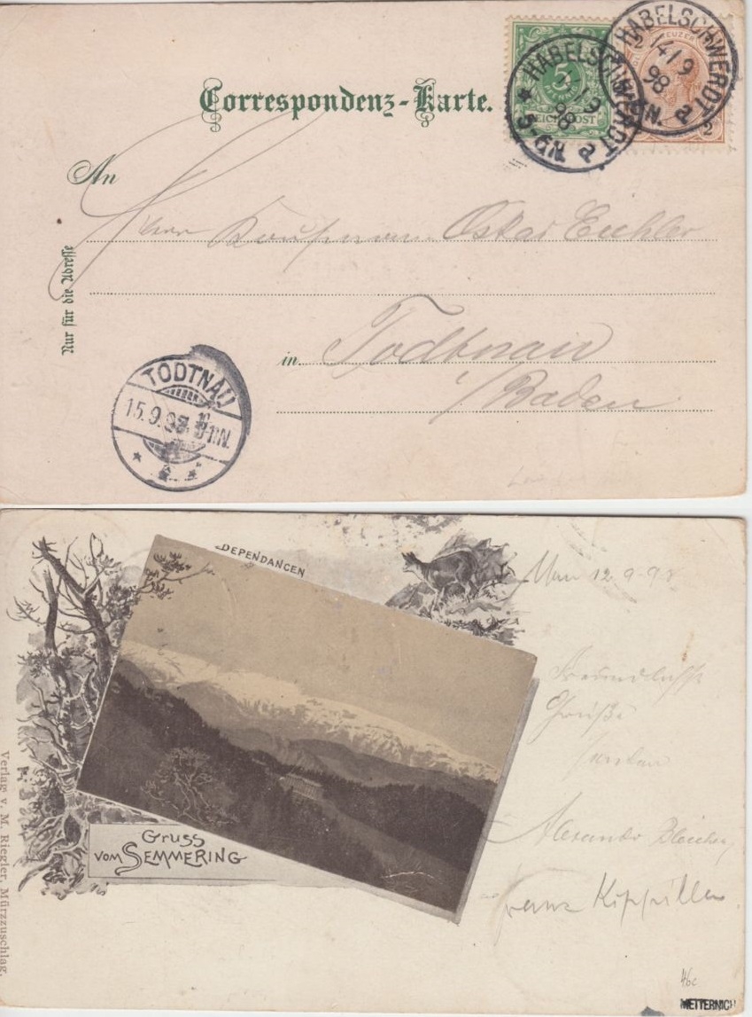 vermutlich von einem Semmering-Urlauber mitgenommen uns erst in Deutschland zur Post, daher nochmals mit 5 Pfg. nachfrankiert - Stichwort: Schlesien