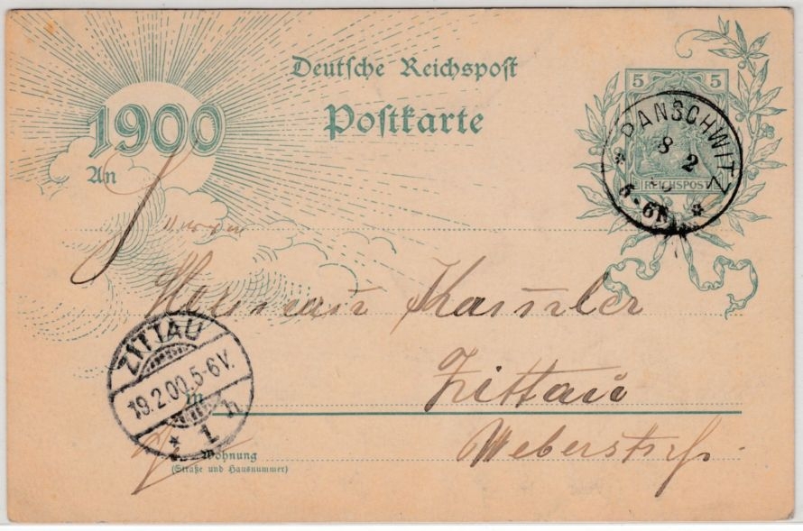 DR - Panschwitz 1900, K1 a. 5 Pfg. Germania Jahrhundert-GA-Karte n. Zittau