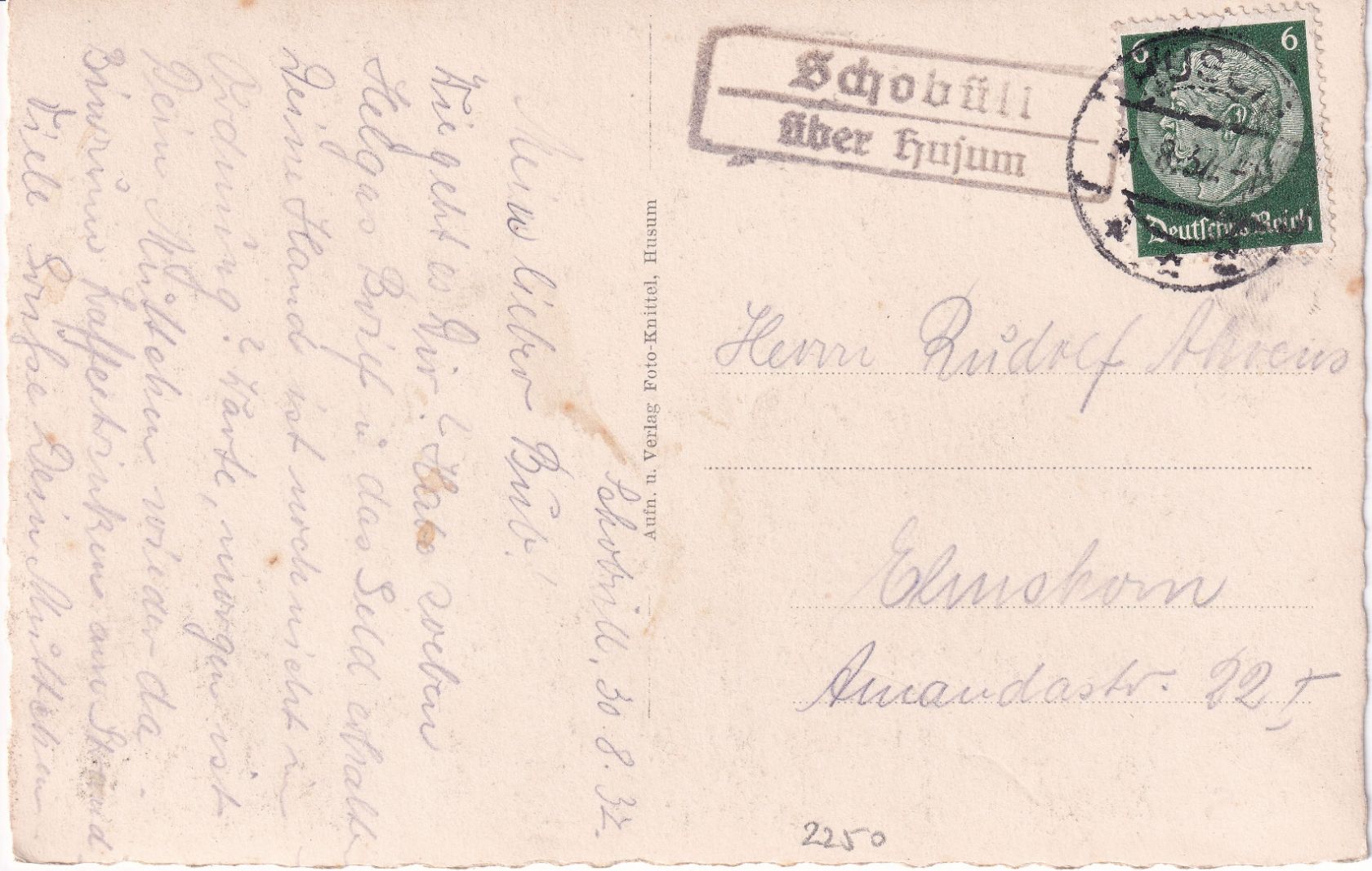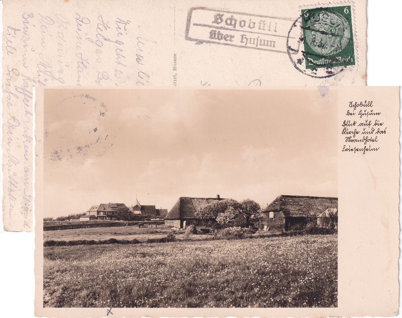 DR - Schobüll ü. Husum Landpost-Ra2 entspr. AK n. Elmshorn 1937