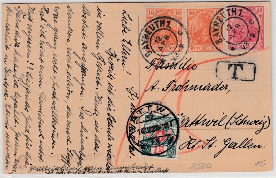 n. Wattwil - 15 Rp. schweiz. Portomarke