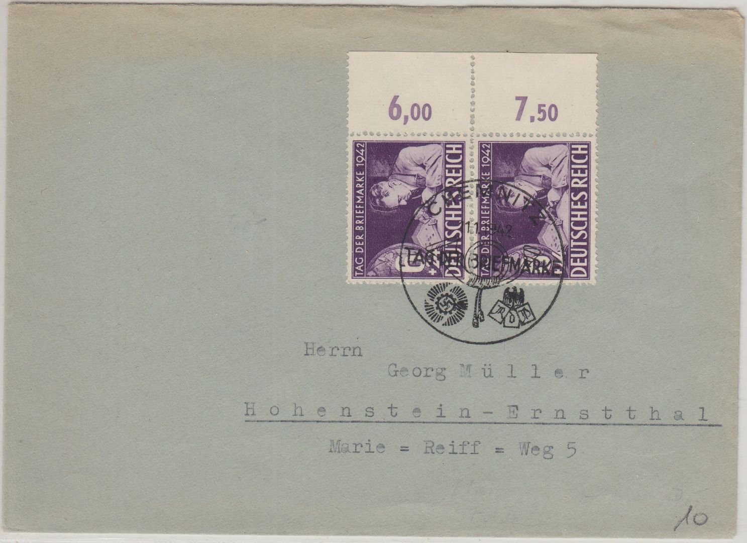 DR - Tag der Briefmarke Brief/FDC SST Chemnitz 11.1.42 Paar Oberrand !