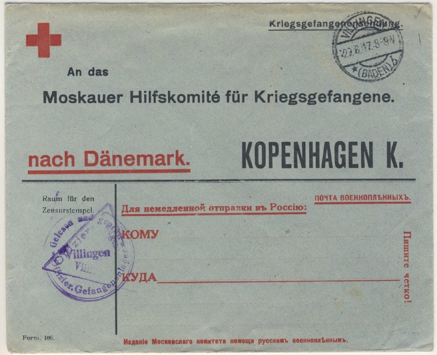 DR - Villingen Baden 1917 Kriegsgefangenenbrief n. DÄNEMARK Rotes Kreuz Vordruck