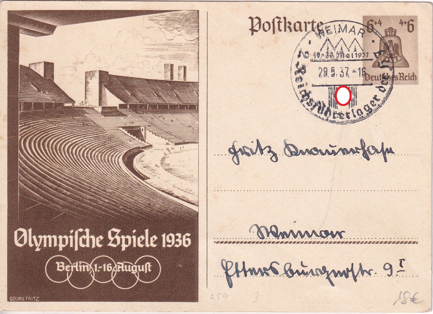 DR - Weimar 1937 Reichsführerlager der HJ SST 6 Pfg. Olympiade Sonderganzsache