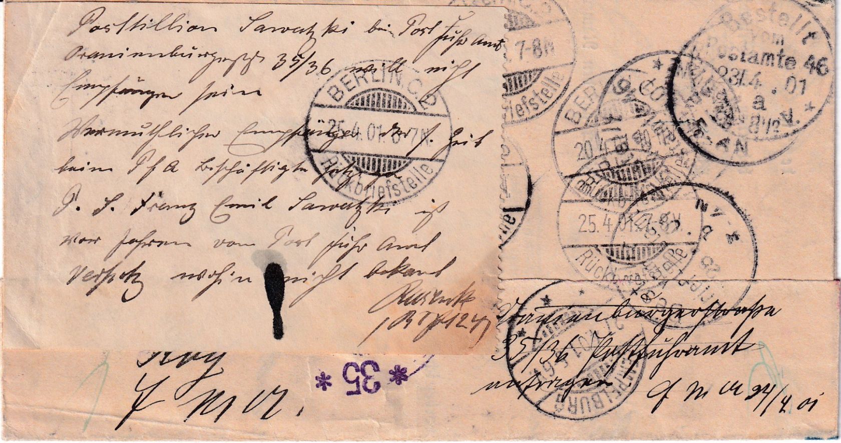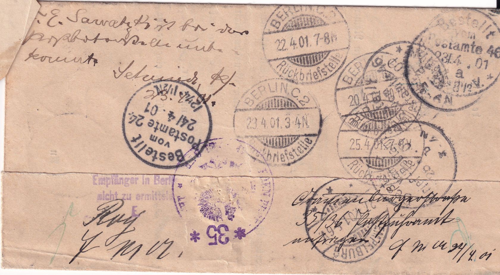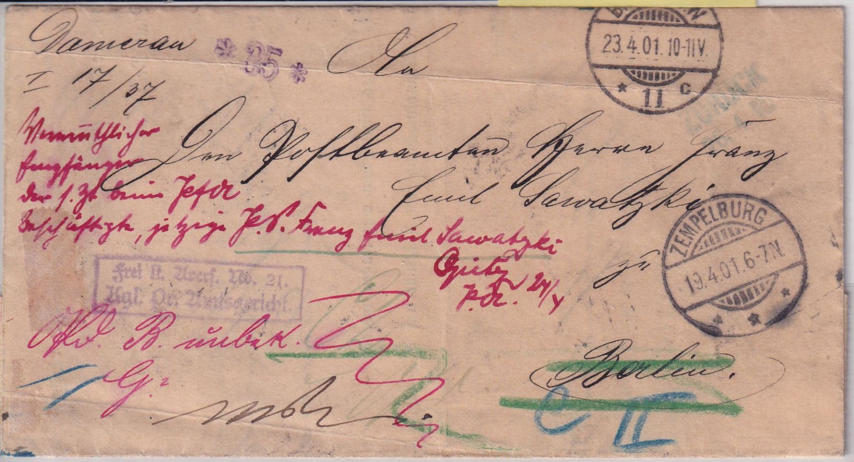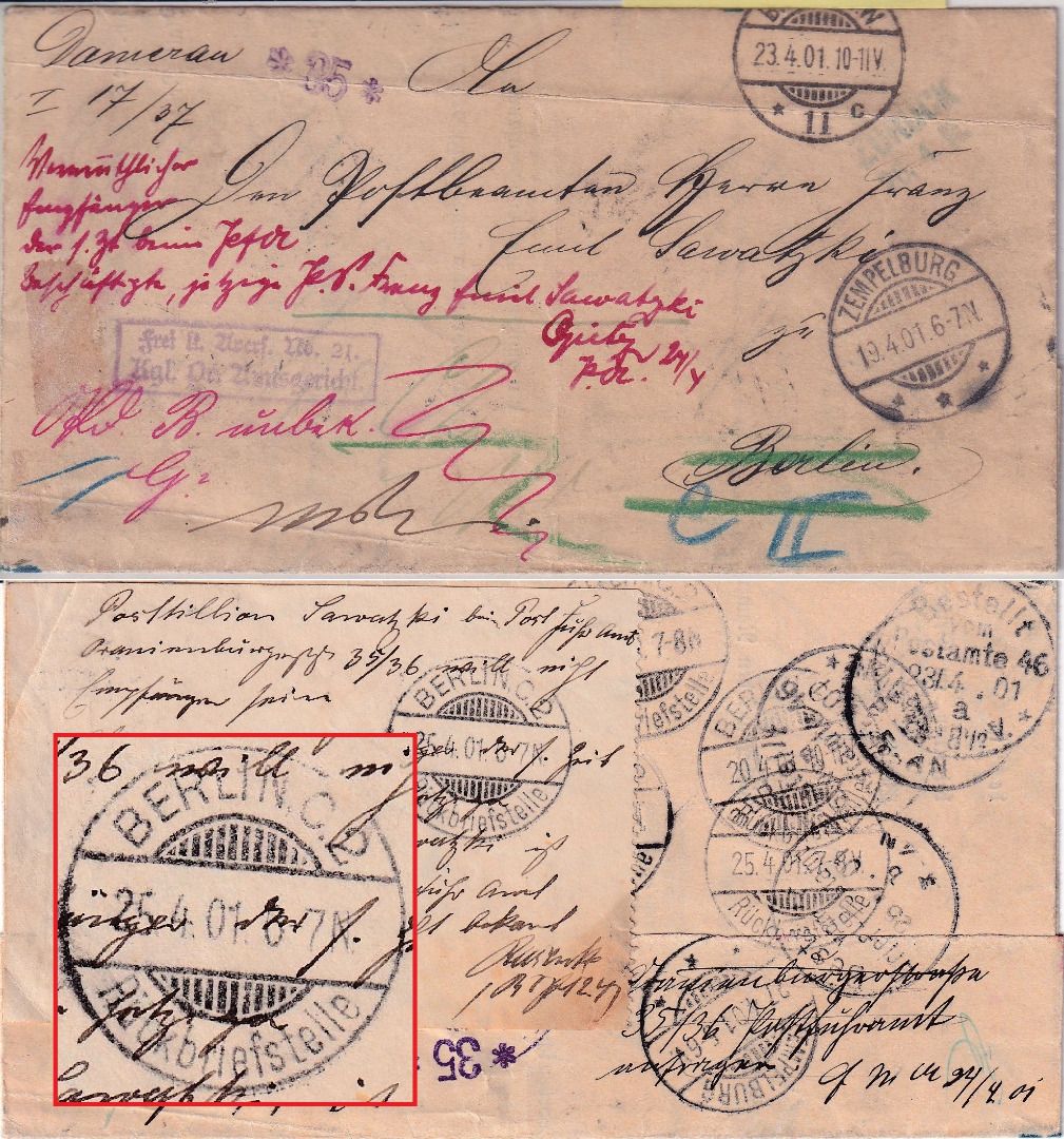 diverse handschr. Retourvermerke, rs. u.a. 5x der Stempel Berlin Rückbriefstelle - mit Inhalt (Grundbuchsache)