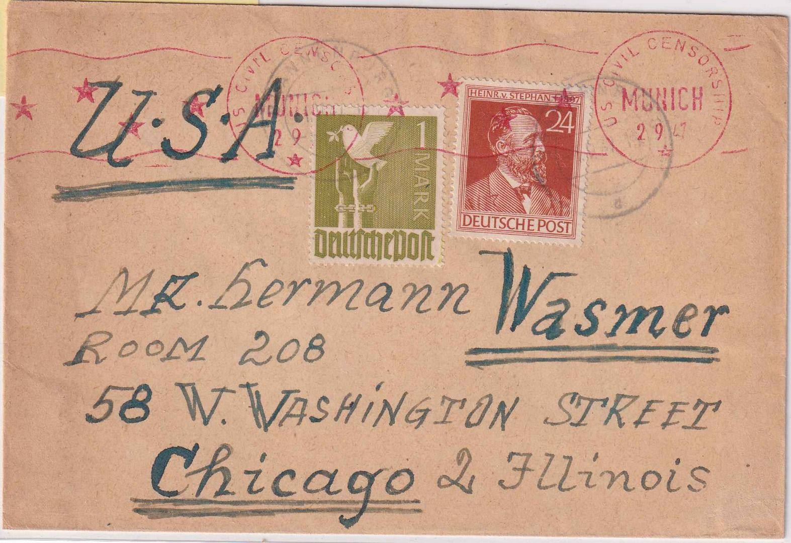 All.Bes. - 1 M. Taube u.a. Zensurbrief n. USA Brannenburg - Chicago 1947