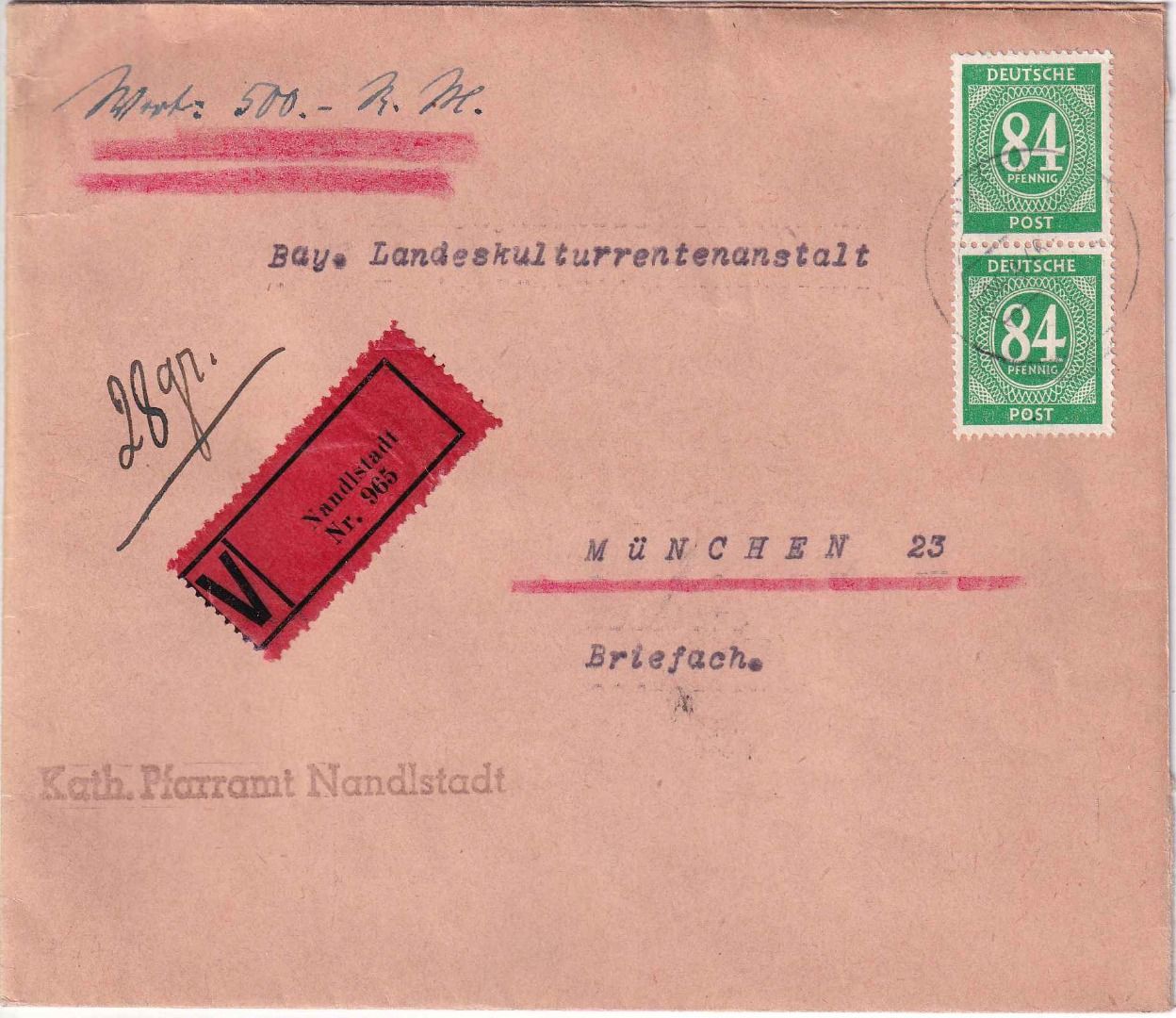 Tarif: Brief >20g 48 Pfg. + 100 Pfg. Behandlungsgebühr + 20 Pfg. Wertangabegebühr = 168 Pfg. - ohne Inhalt