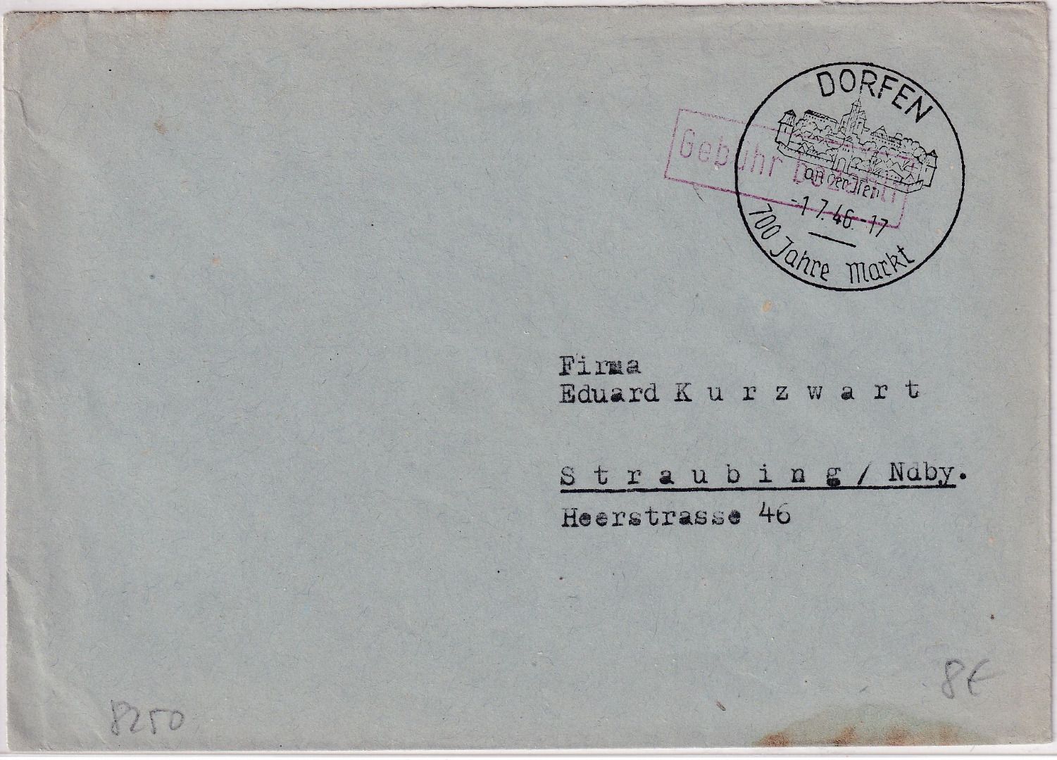 glarklarer Handwerbestempel "700 Jahre Markt" - ohne Inhalt