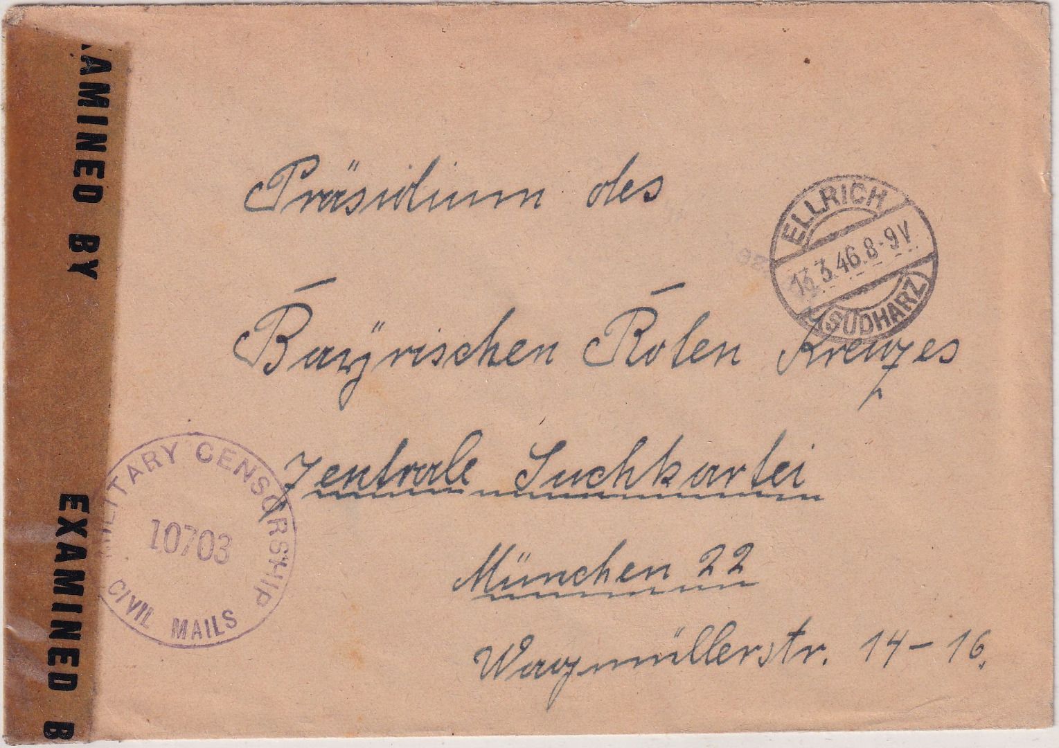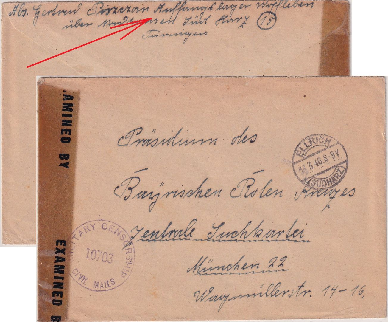 adr, an den Sucgdienst des Bayer. Roten Kreuzes - Abs.: Auffanglager Woffleben ü. Nordhausen (Displaced Persons) - ohne Inhalt