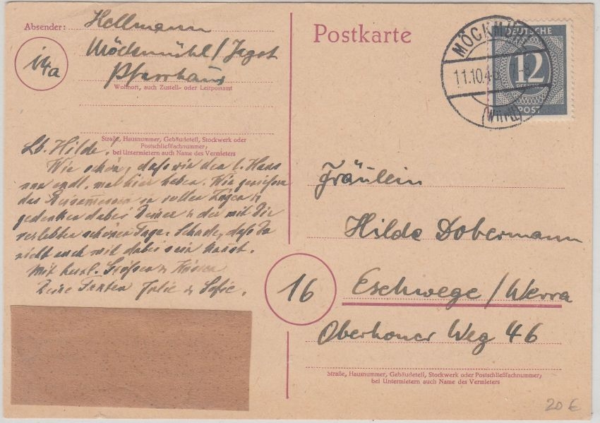 n. Eschwege - Wertstempel und Propagandaspruch überklebt
