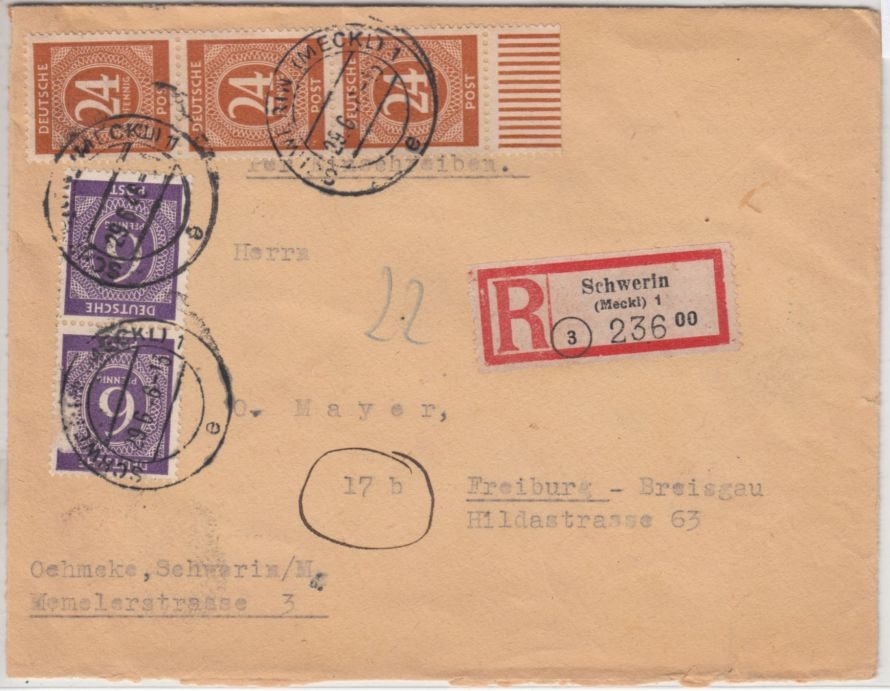 Freiburg - R-Zettel m. Postleitgebietszahl - ohne Inhalt - 1x 6 Pfg. mit Schürfung/Druckausfall (?)