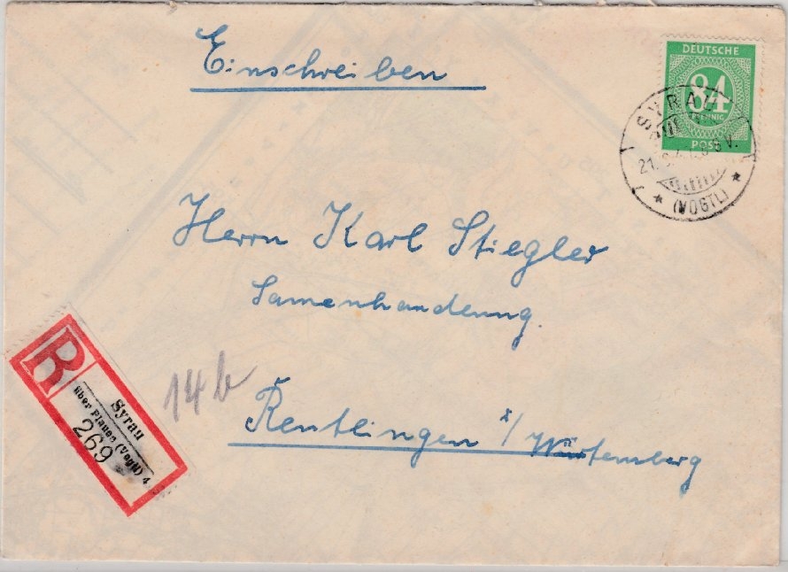 R-Zettel-Aufbrauch d. Poststelle I - ohne Inhalt