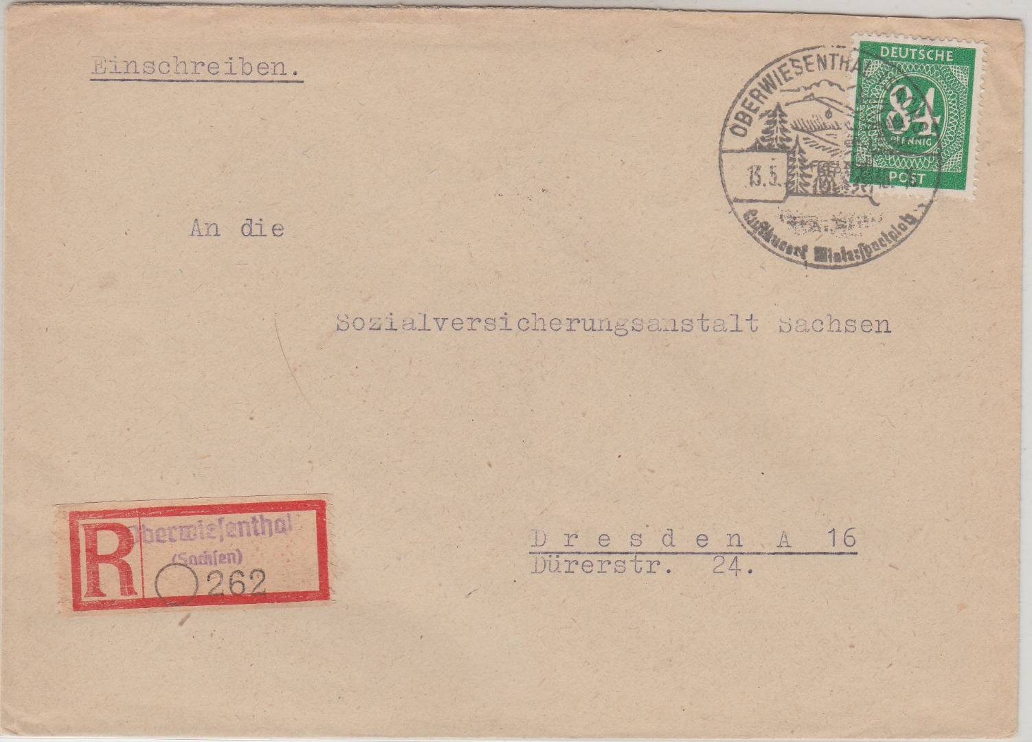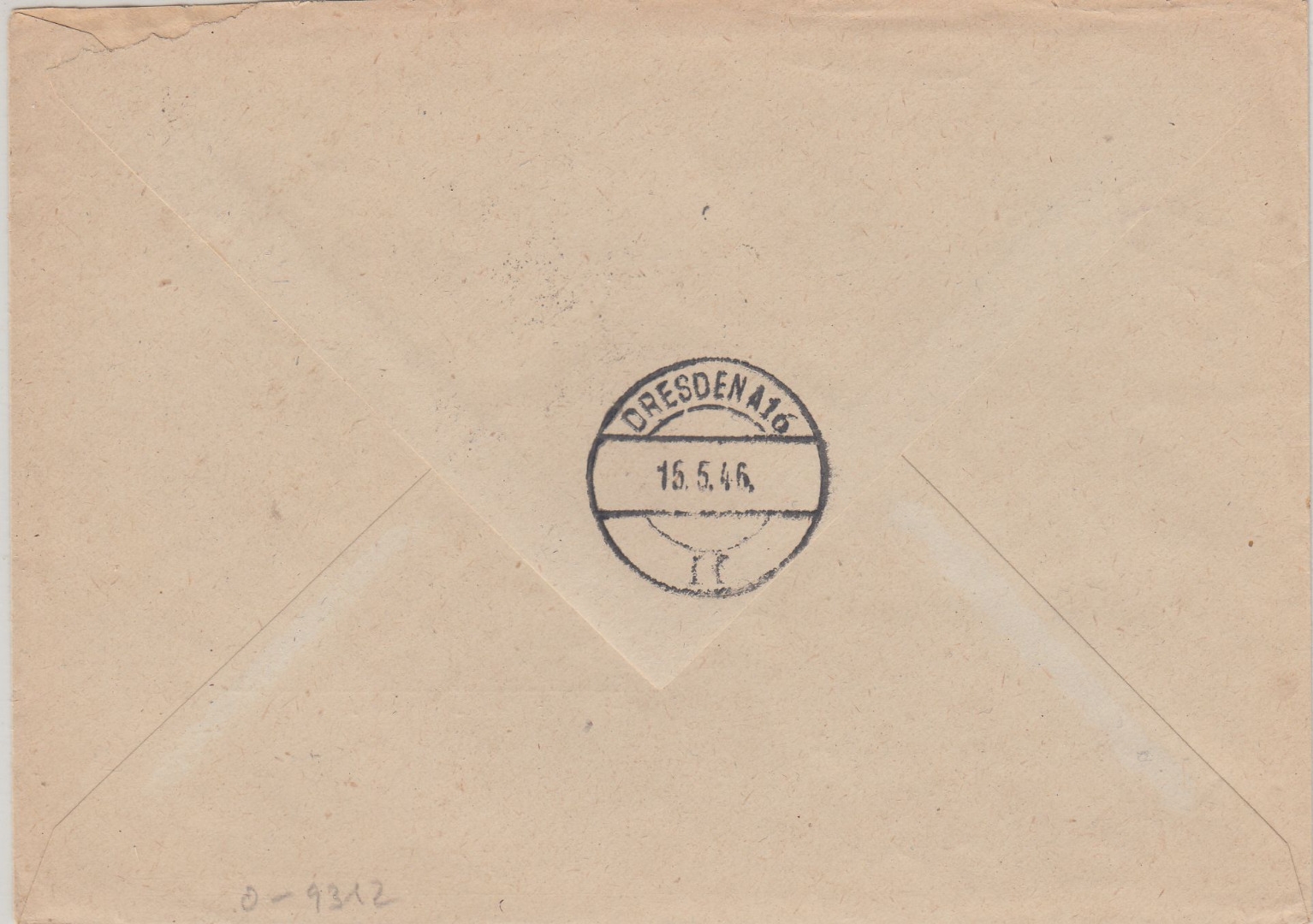 gelaufen n. Dresden - Aushilfs-R-Zettel - Handwerbestempel - ohne Inhalt