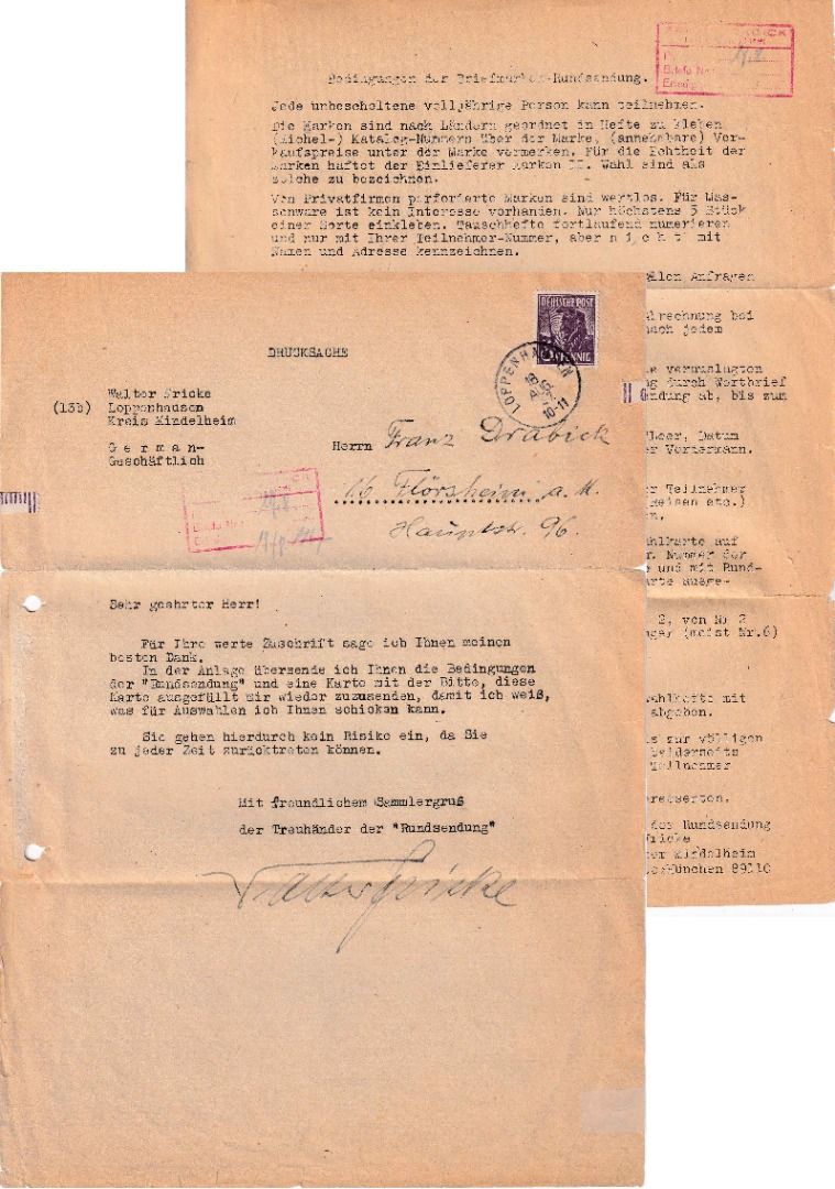 mit Inhalt: "Bedingungen für Briefmarken-Rundsendungen" - Stichwort: Breitenbrunn, Philatelie